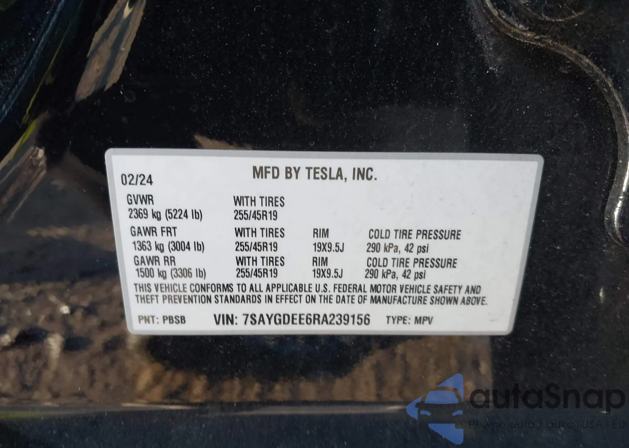 VIN: 7SAYGDEE6RA239156