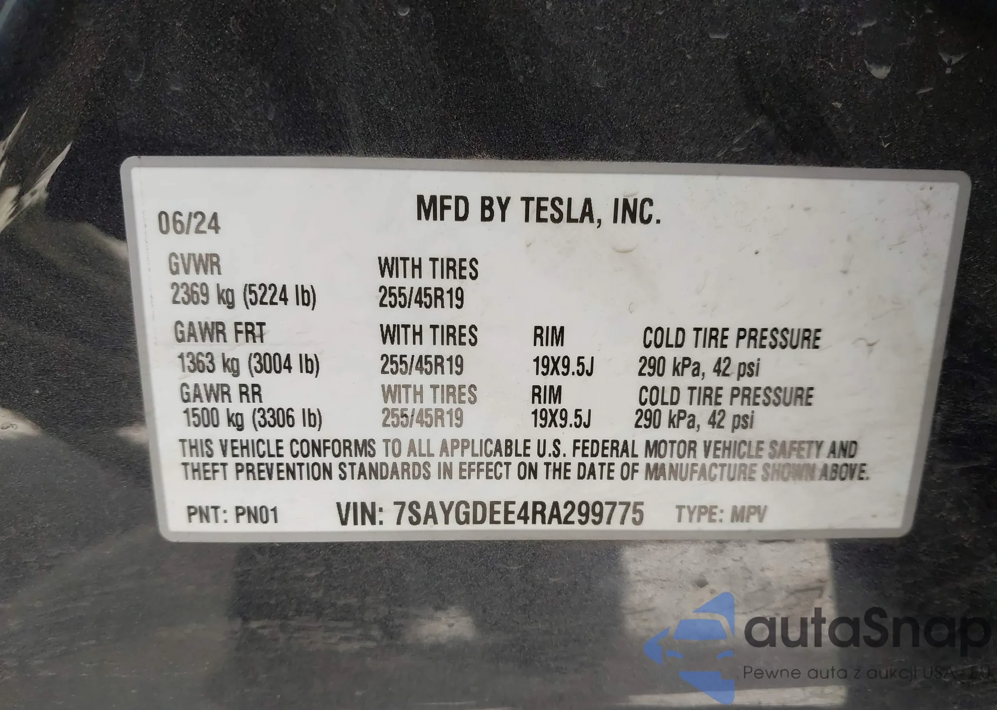 VIN: 7SAYGDEE4RA299775