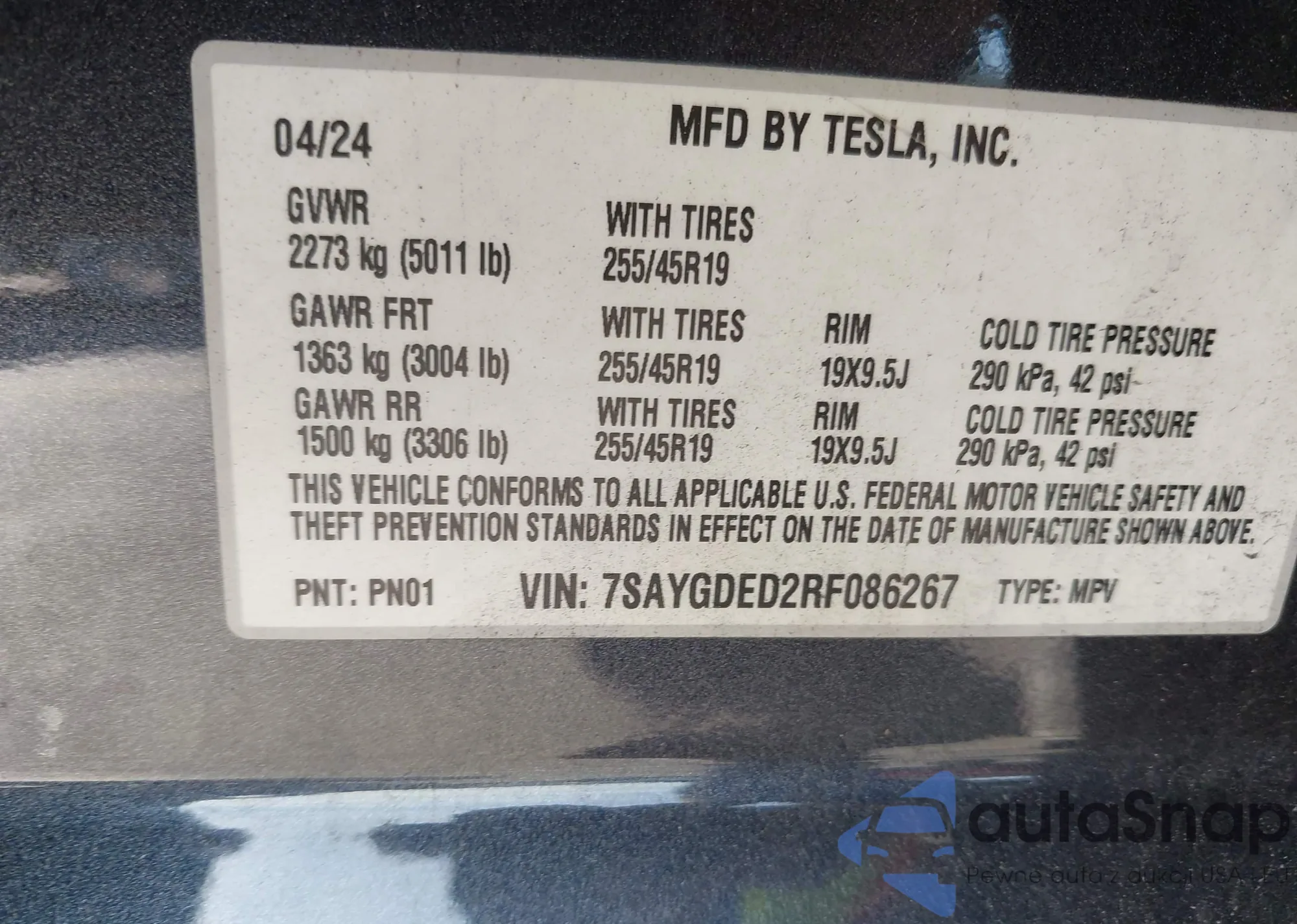 VIN: 7SAYGDED2RF086267