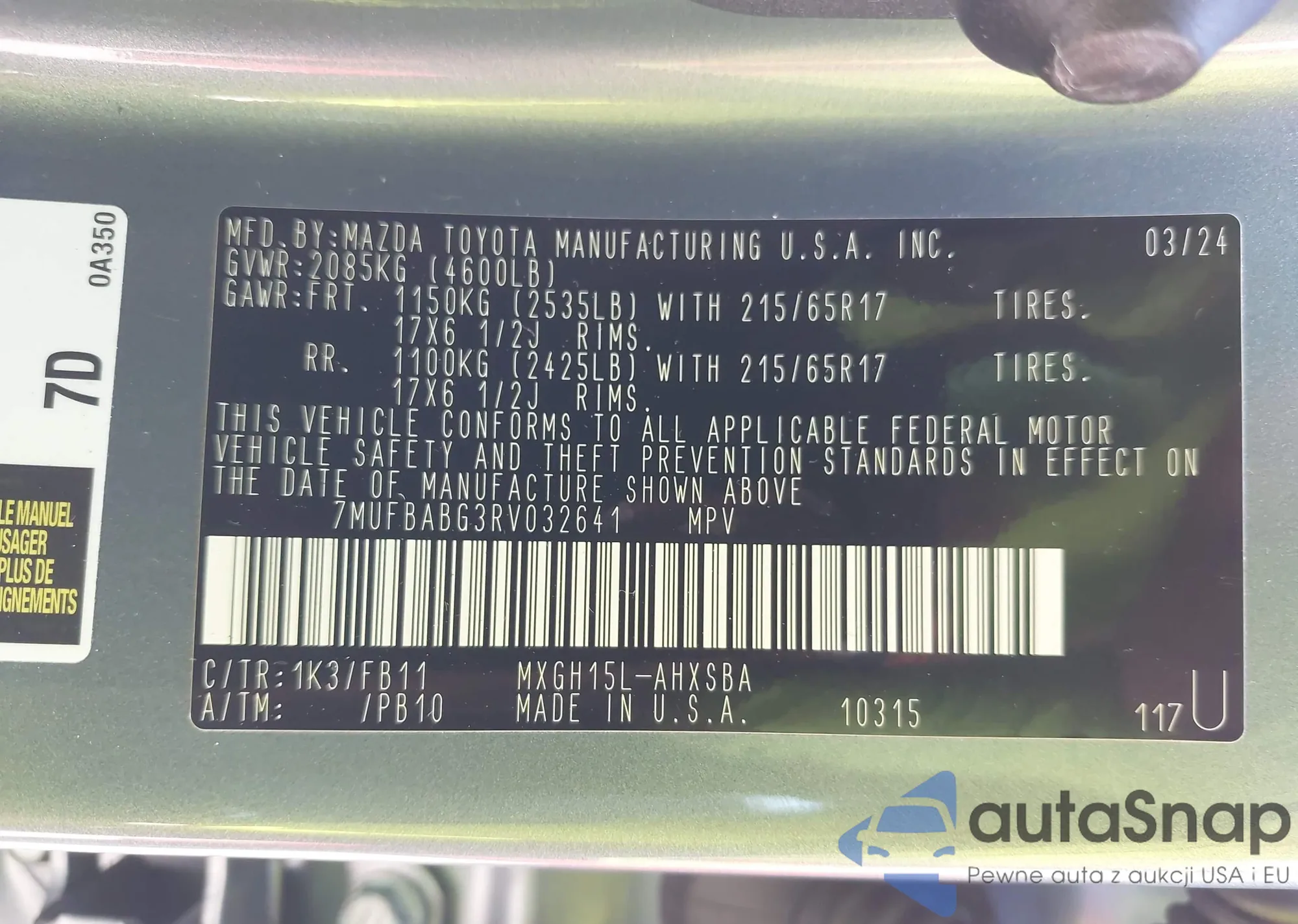 VIN: 7MUFBABG3RV032641
