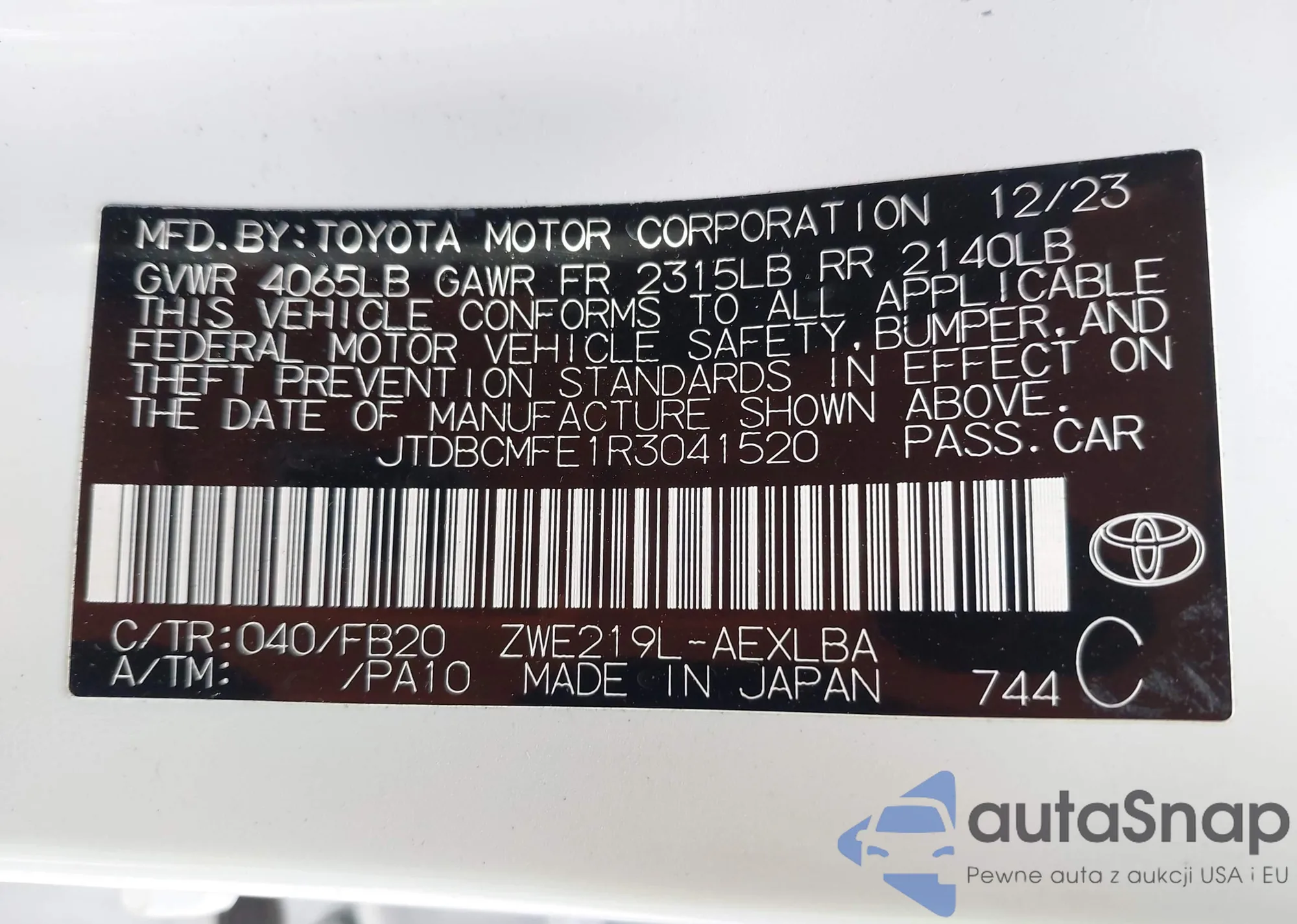 VIN: JTDBCMFE1R3041520