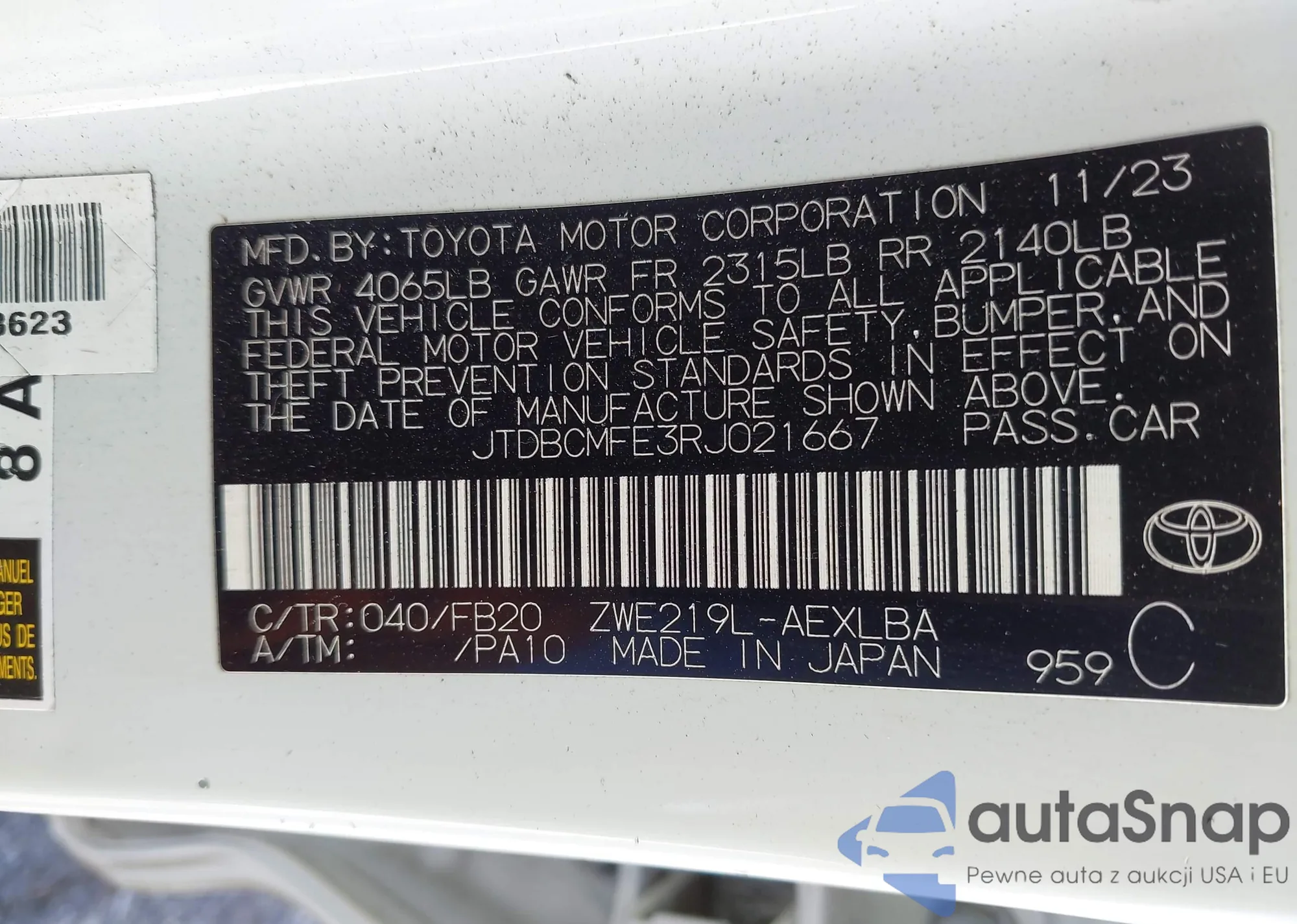 VIN: JTDBCMFE3RJ021667