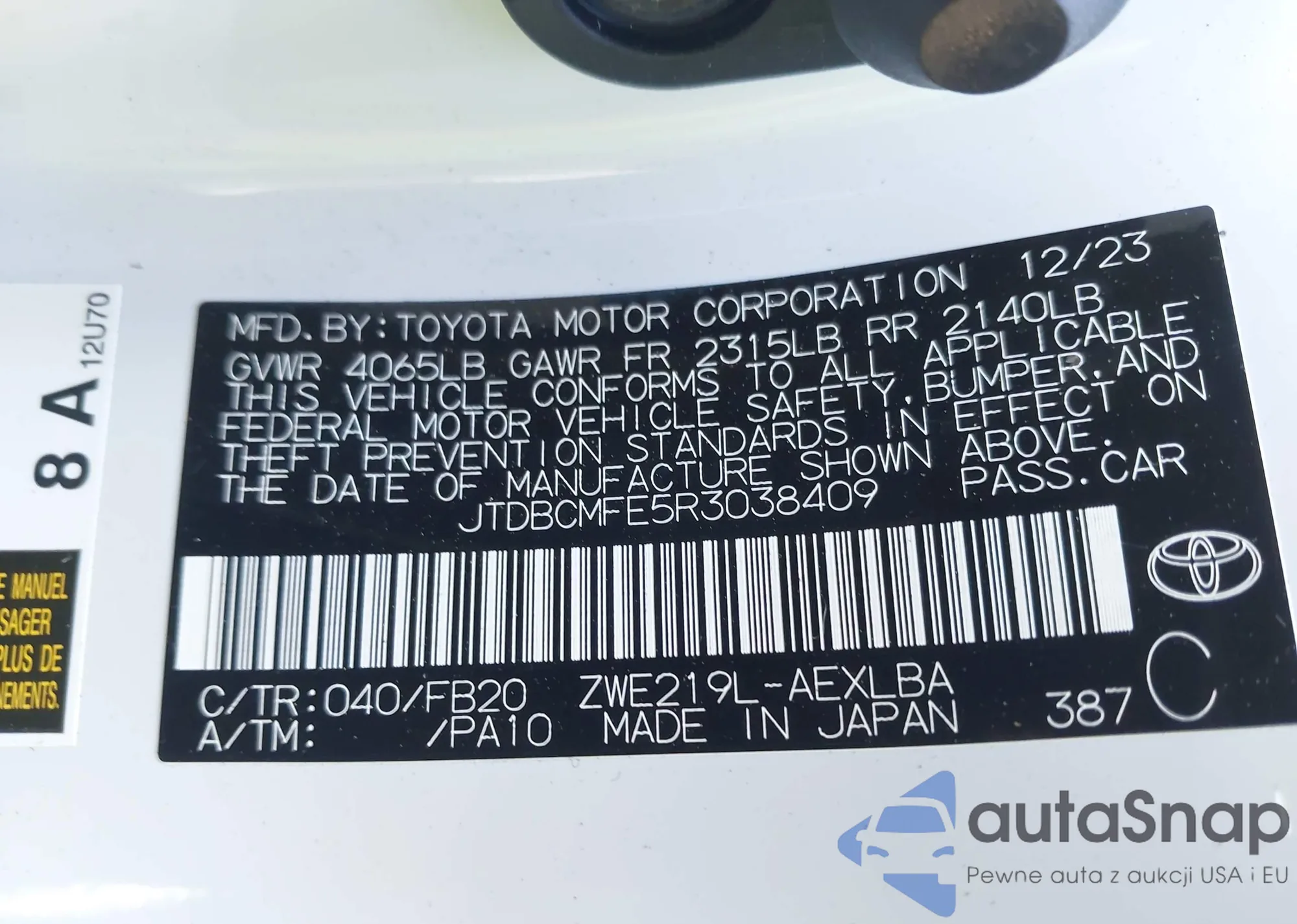 VIN: JTDBCMFE5R3038409