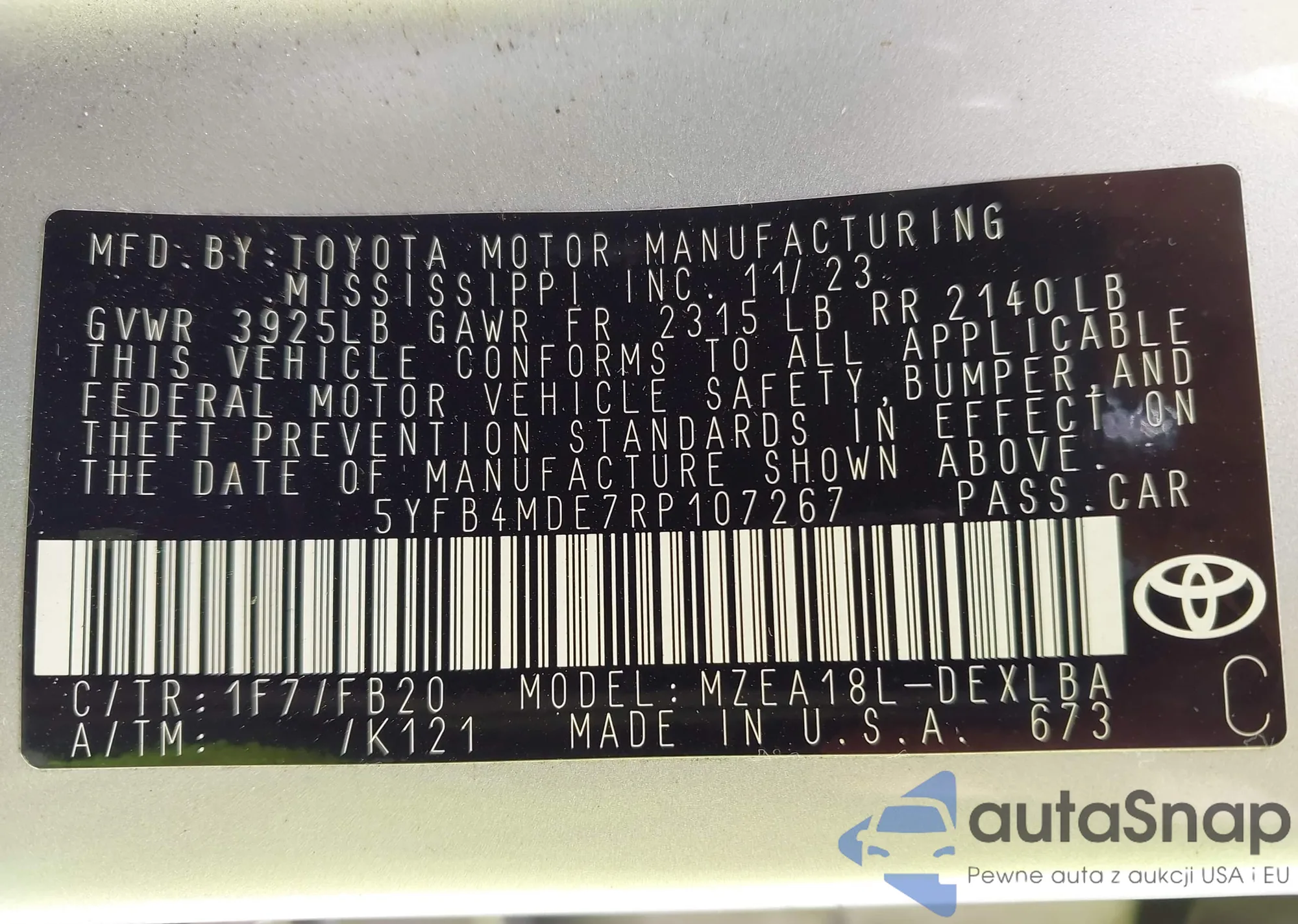 VIN: 5YFB4MDE7RP107267