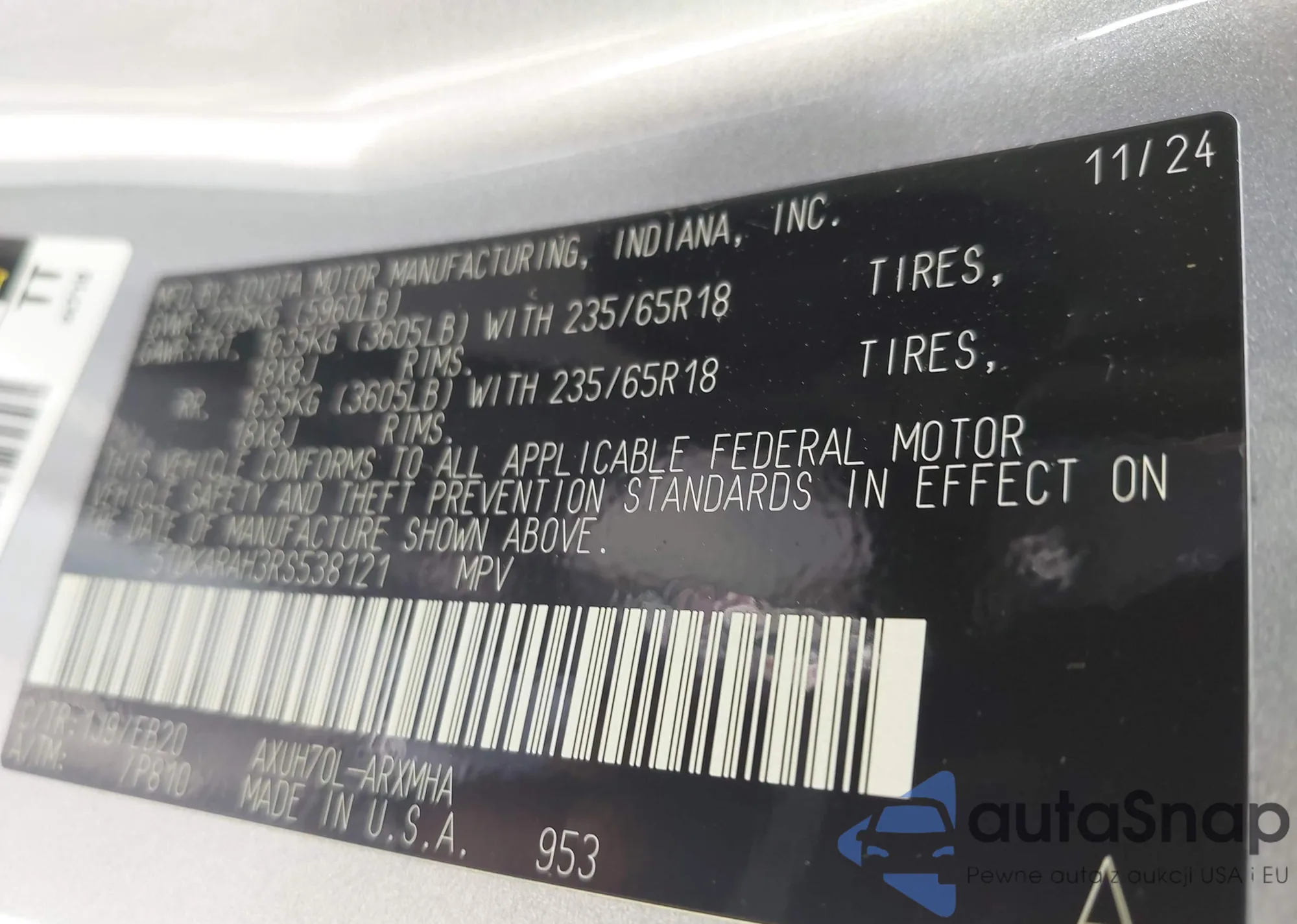 VIN: 5TDKARAH3RS538121