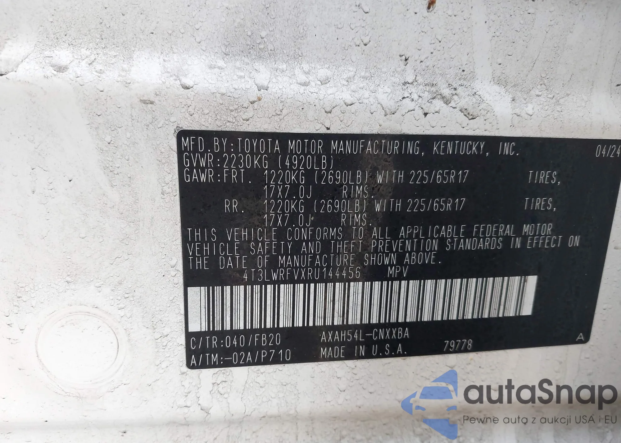 VIN: 4T3LWRFVXRU144456