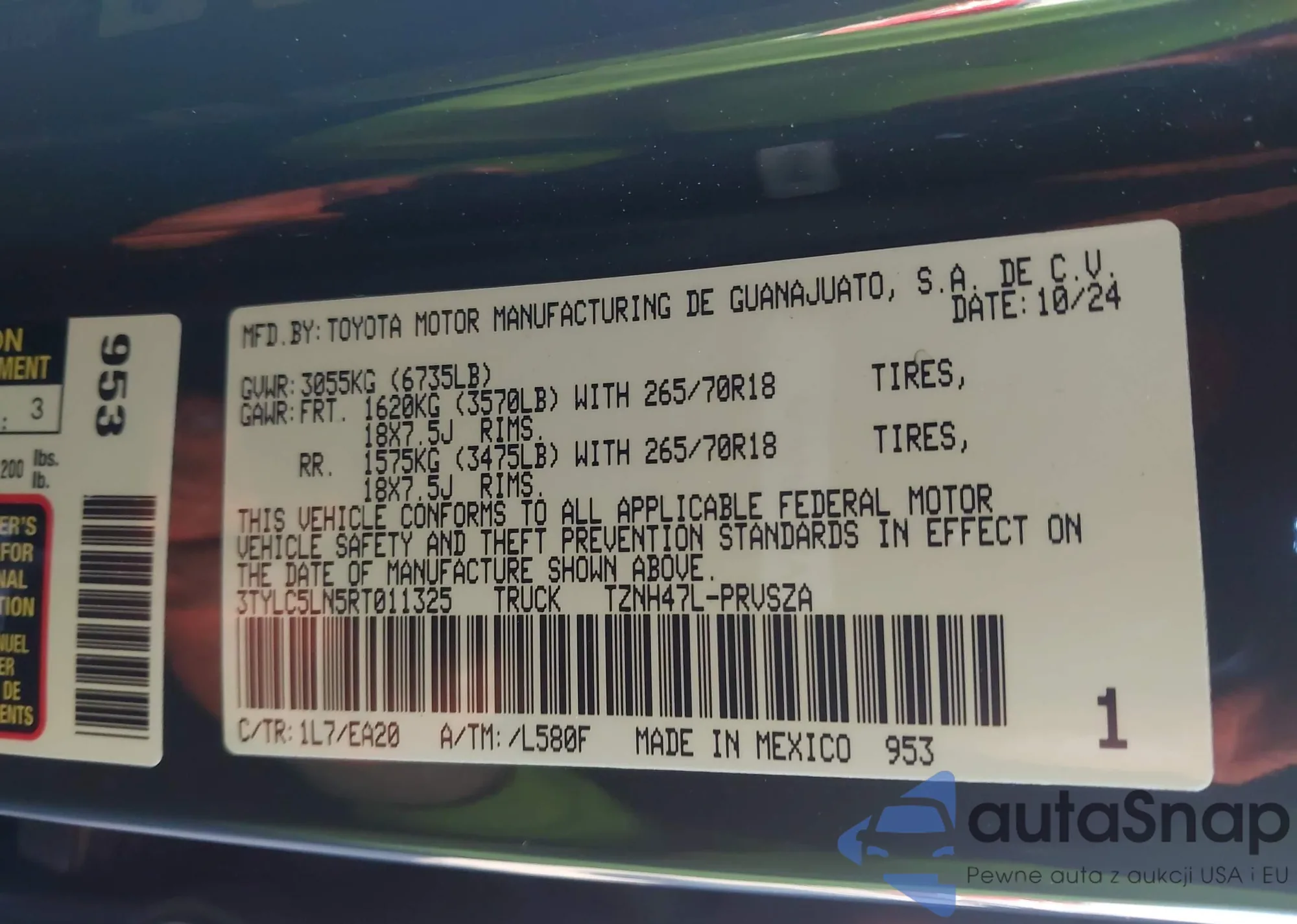 Автомобиль Toyota Tacoma 2024 (VIN 3TYLC5LN5RT011325) ранее не участвовал в торгах. Документы чистые, пробег соответствует или ниже среднего по рынку. Продаётся страховой компанией — рекомендуем покупку. Доставка в порт займет около 6–8 недель.