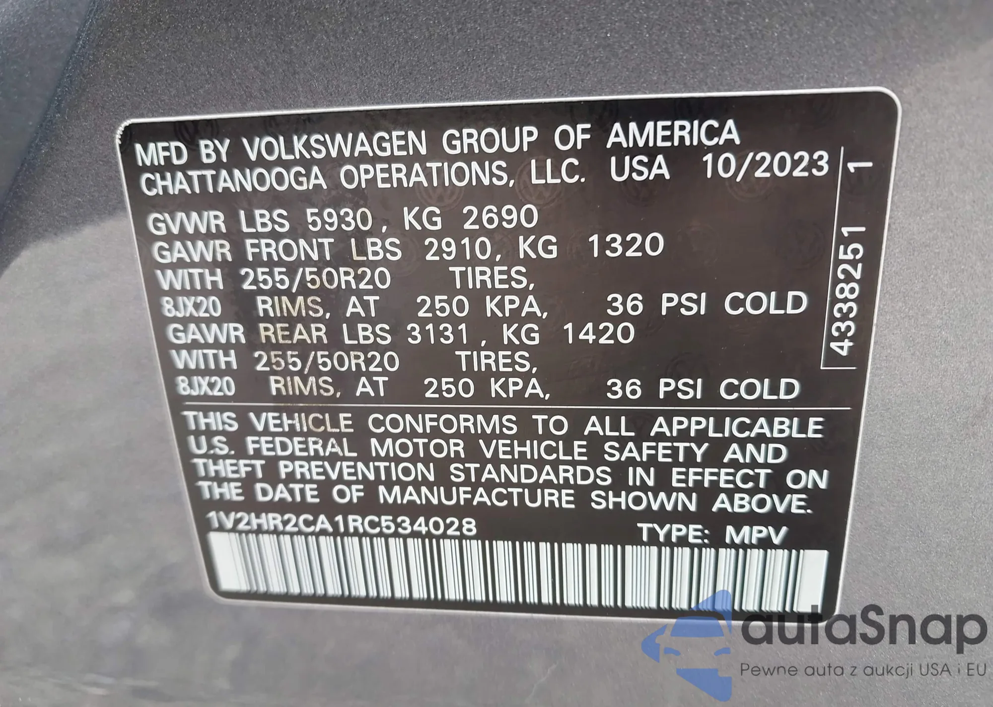 VIN: 1V2HR2CA1RC534028