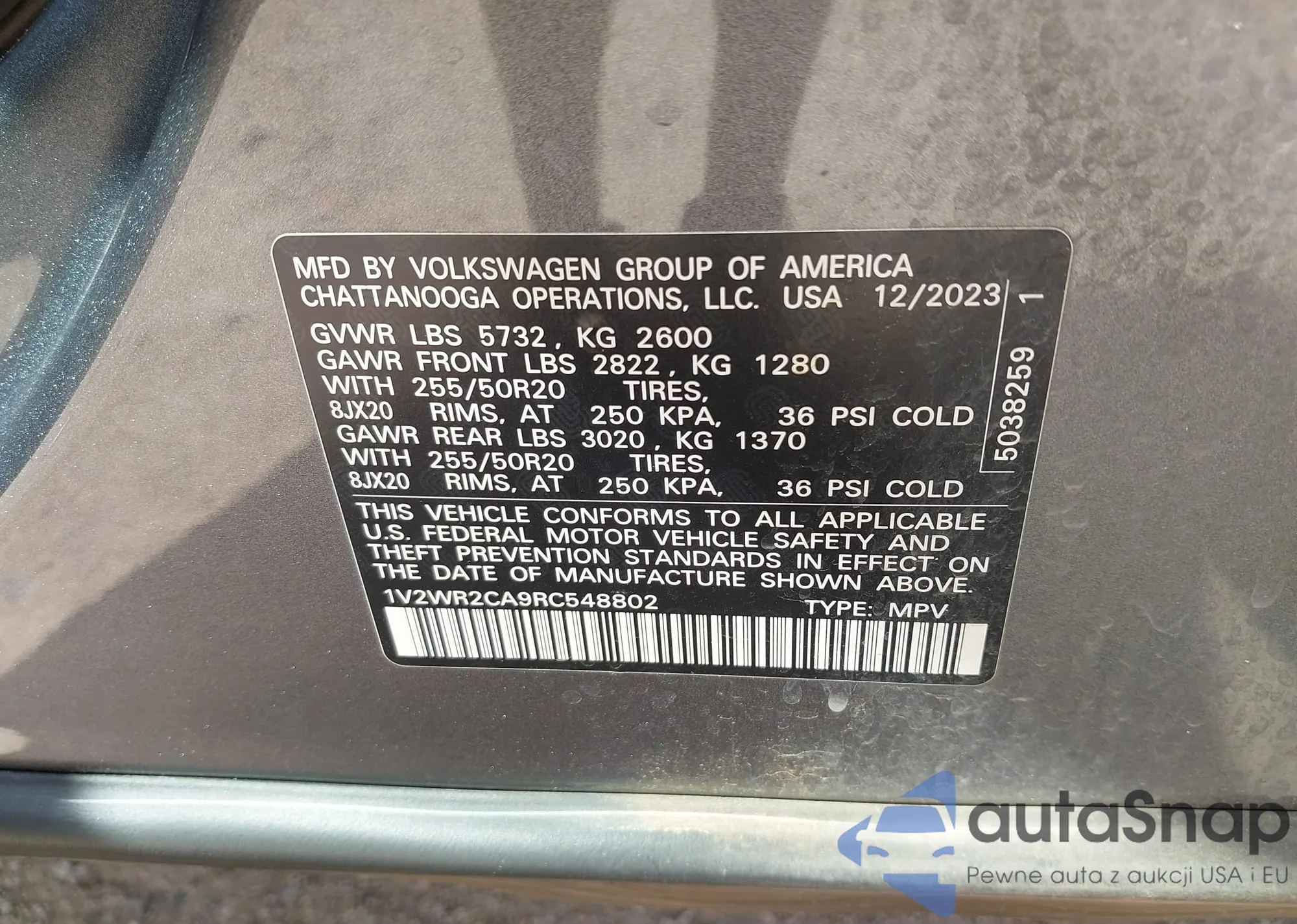 VIN: 1V2WR2CA9RC548802