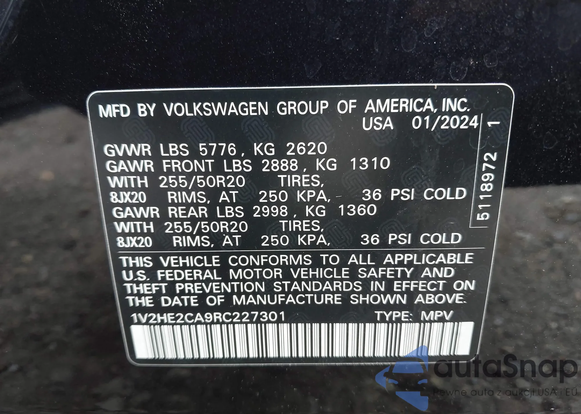 VIN: 1V2HE2CA9RC227301
