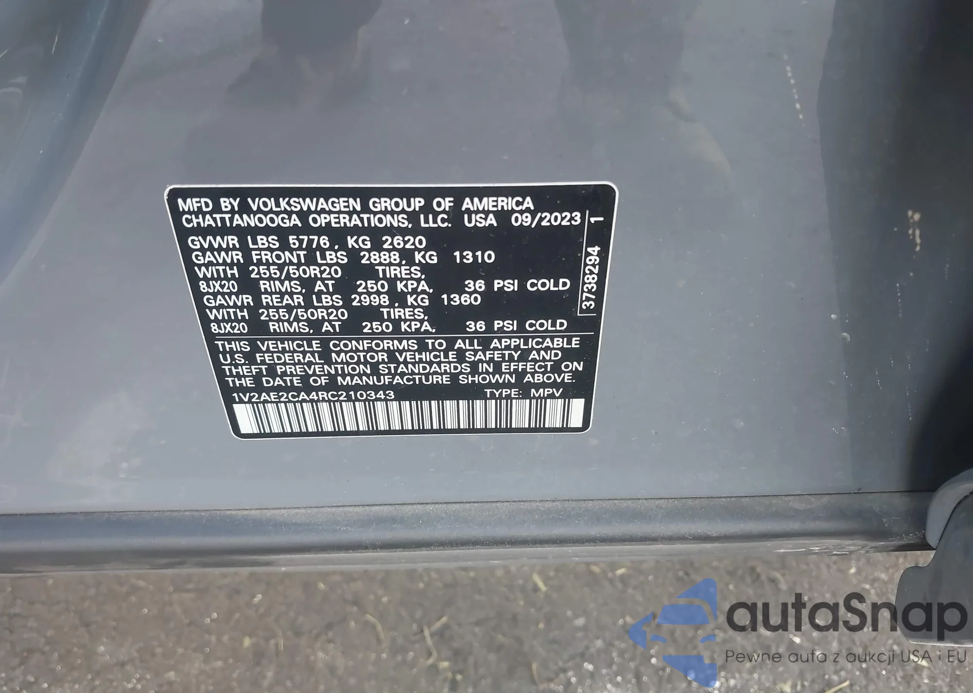 • VIN: 1V2AE2CA4RC210343