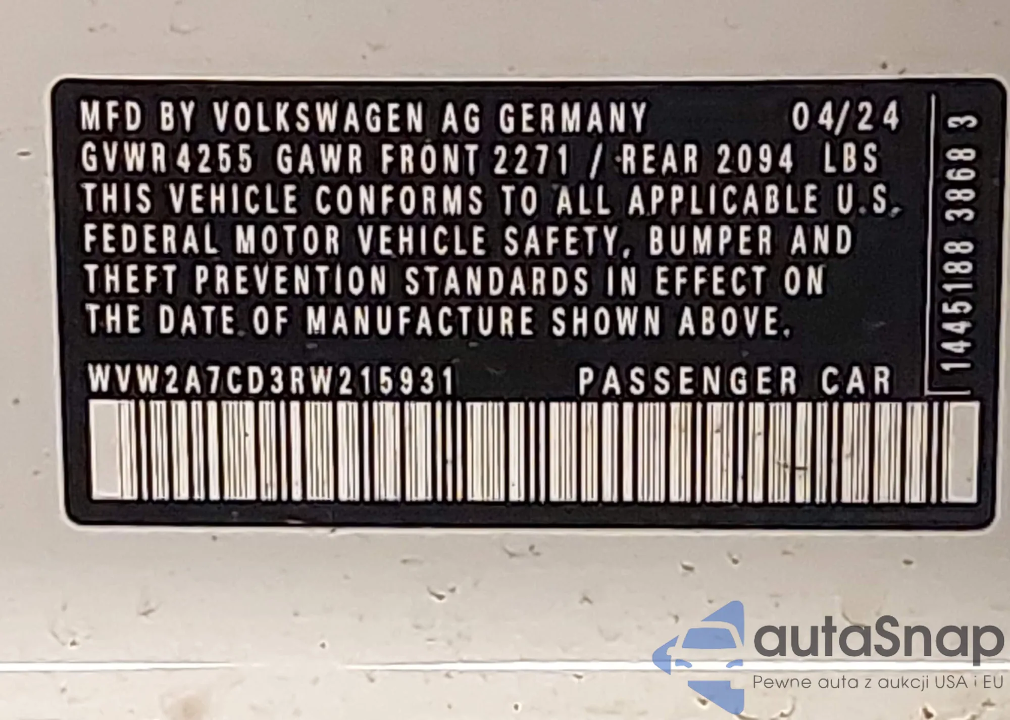 Автомобиль Volkswagen Golf GTI 2024 (VIN WVW2A7CD3RW215931) ранее не участвовал в торгах. Документы чистые, пробег соответствует или ниже среднего по рынку. Продаётся страховой компанией — рекомендуем покупку. Доставка в порт займет около 6–8 недель.