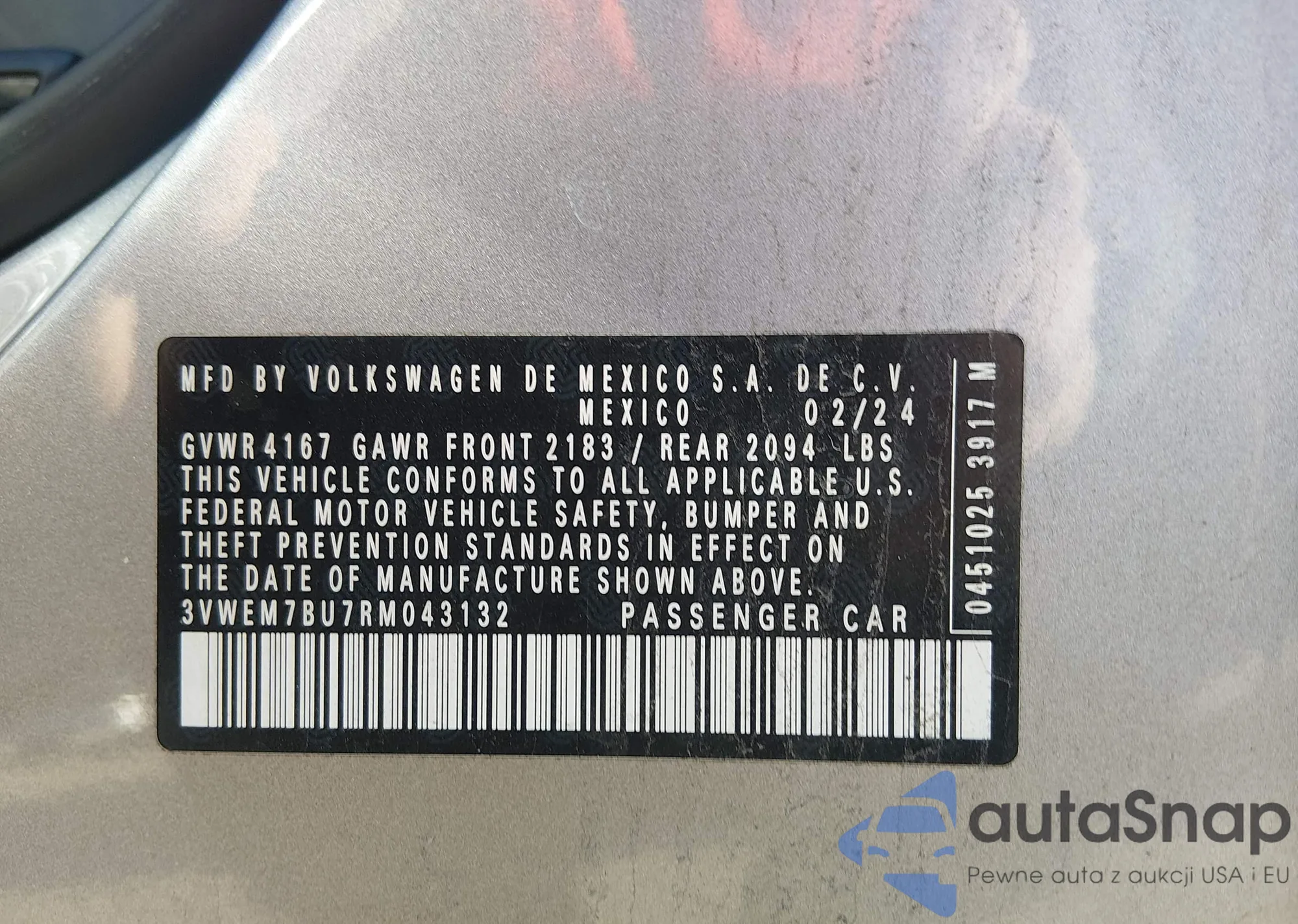 VIN: 3VWEM7BU7RM043132