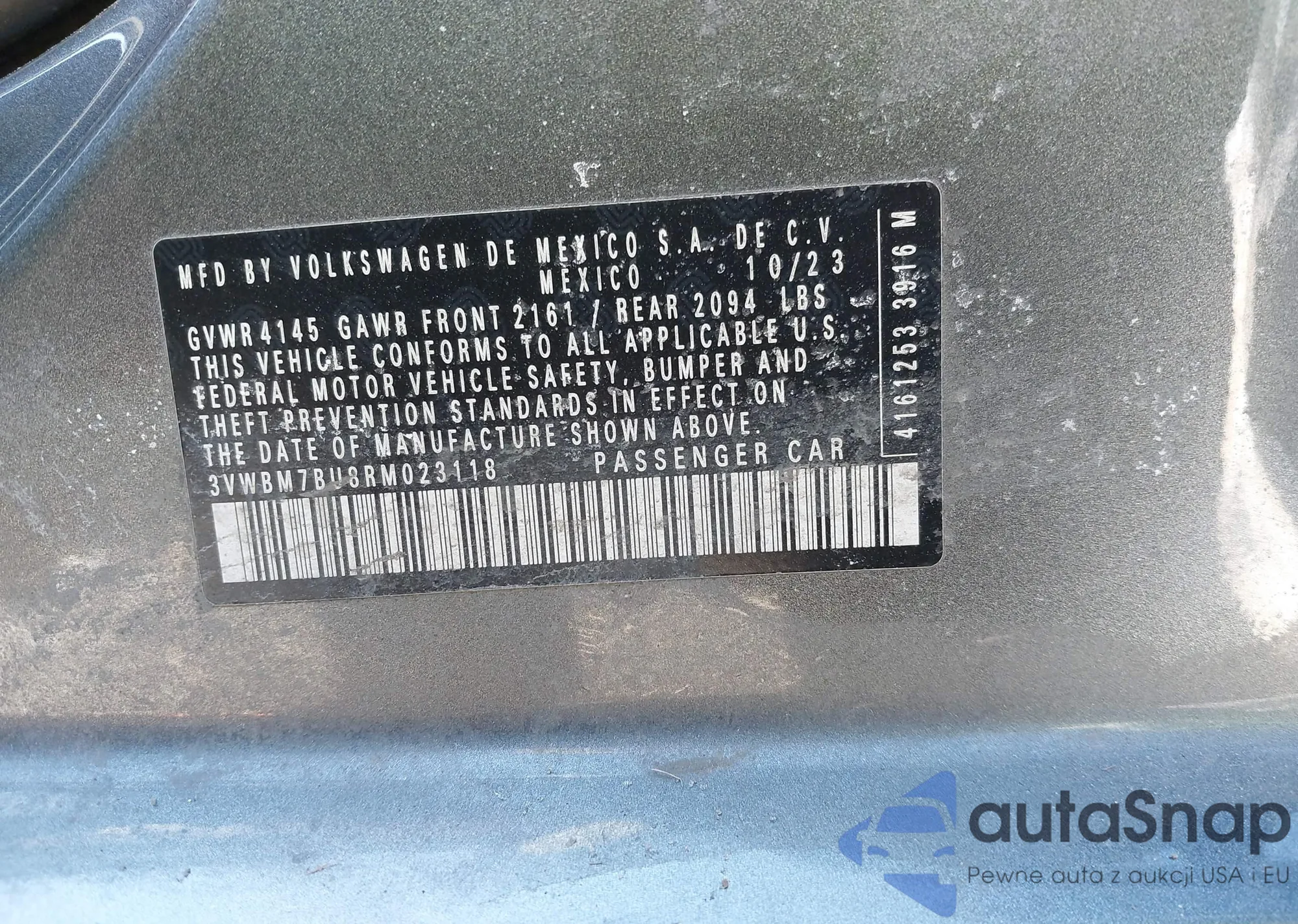 VIN: 3VWBM7BU8RM023118