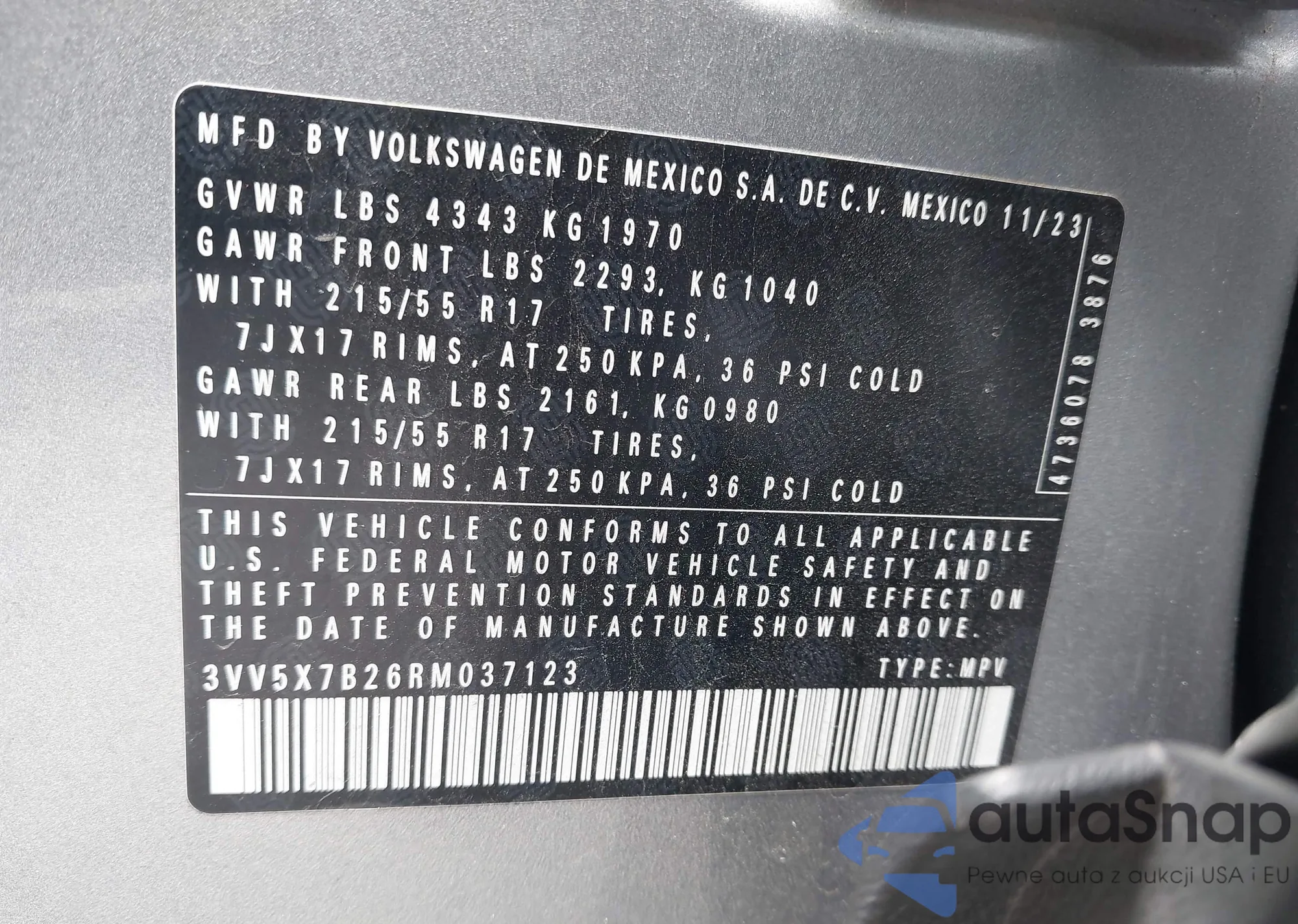 VIN: 3VV5X7B26RM037123
