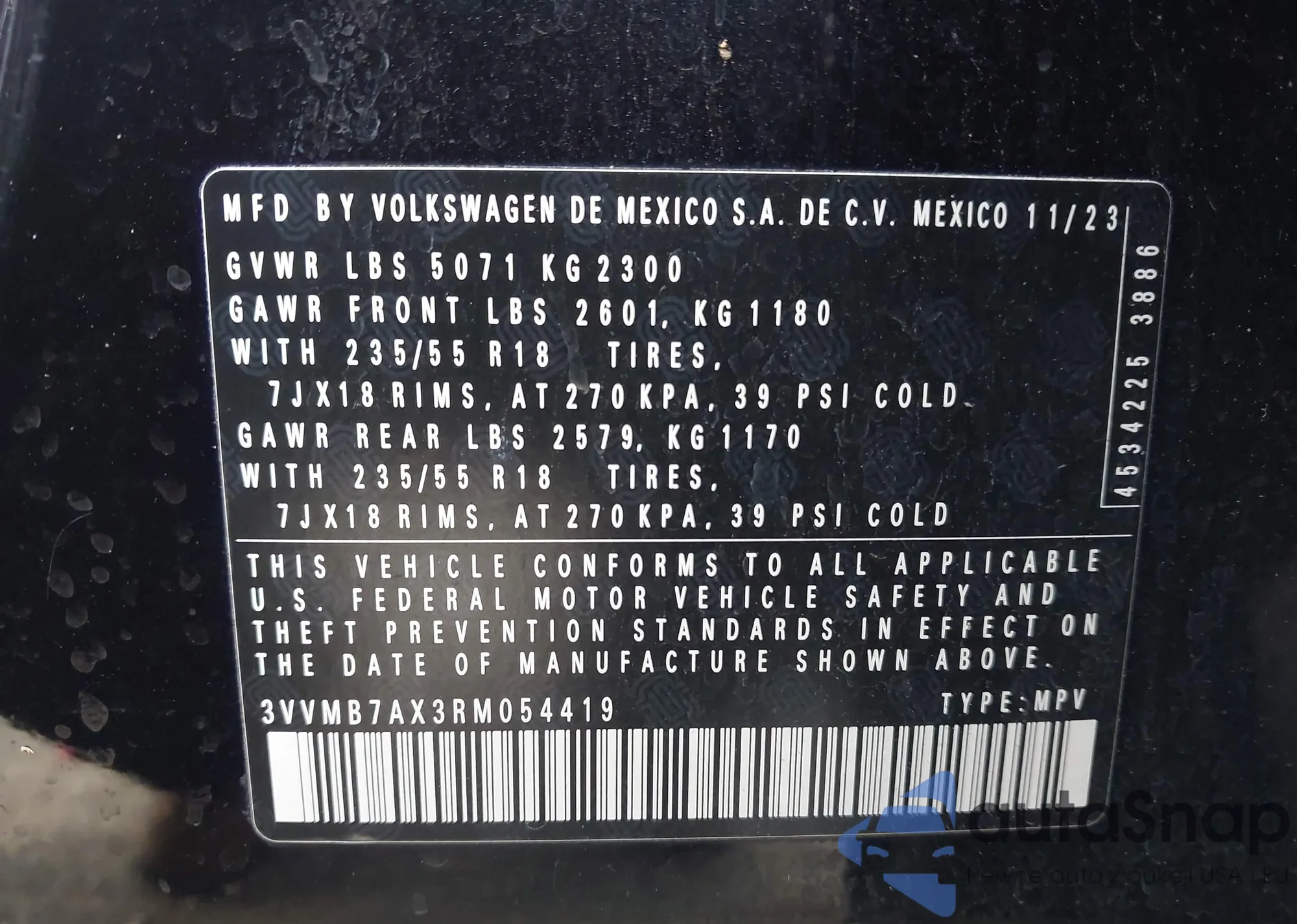 Автомобиль Volkswagen Tiguan 2024 (VIN 3VVMB7AX3RM054419) ранее не участвовал в торгах. Документы чистые, пробег соответствует или ниже среднего по рынку. Продаётся страховой компанией — рекомендуем покупку. Доставка в порт займет около 6–8 недель.