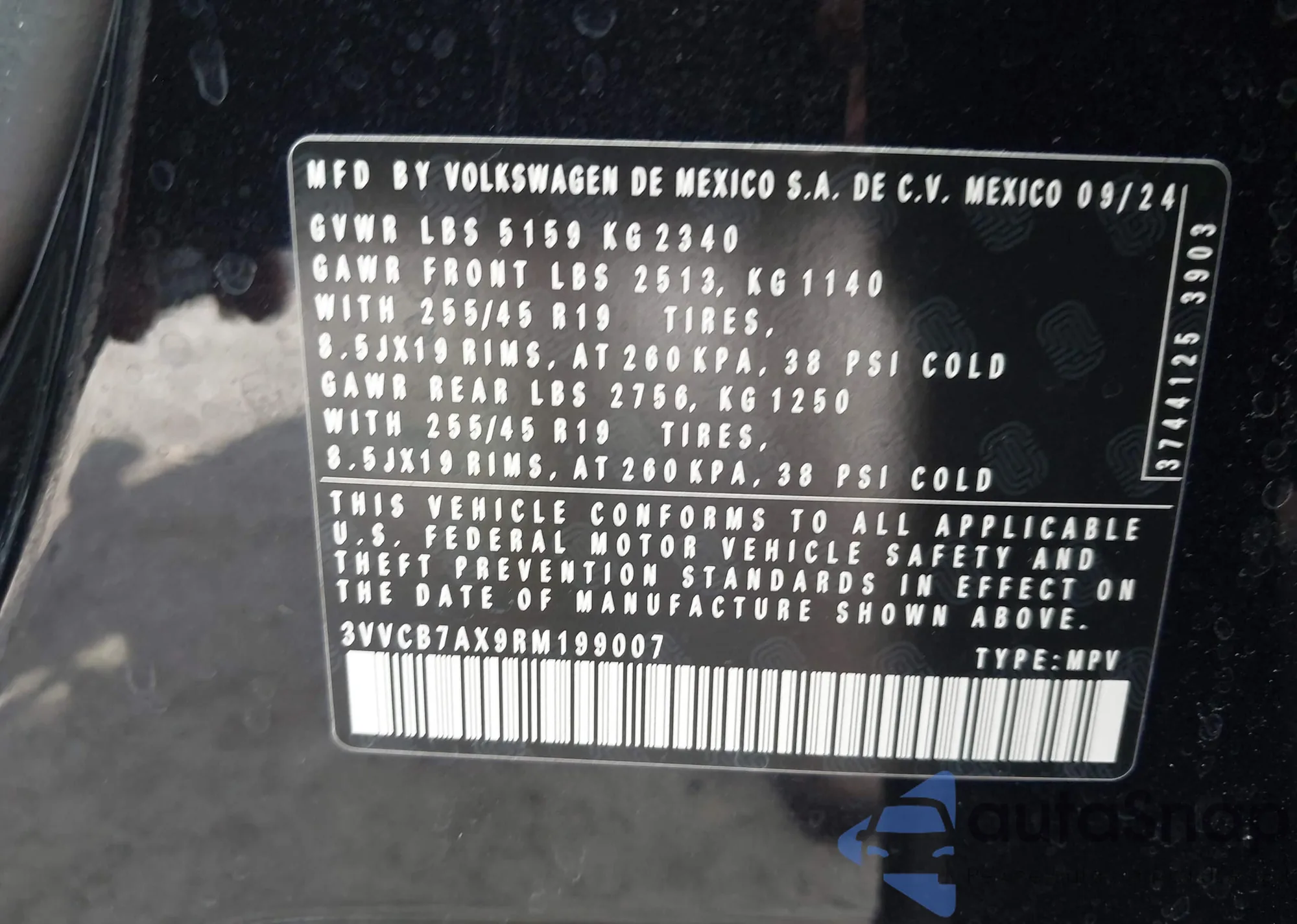 VIN: 3VVCB7AX9RM199007