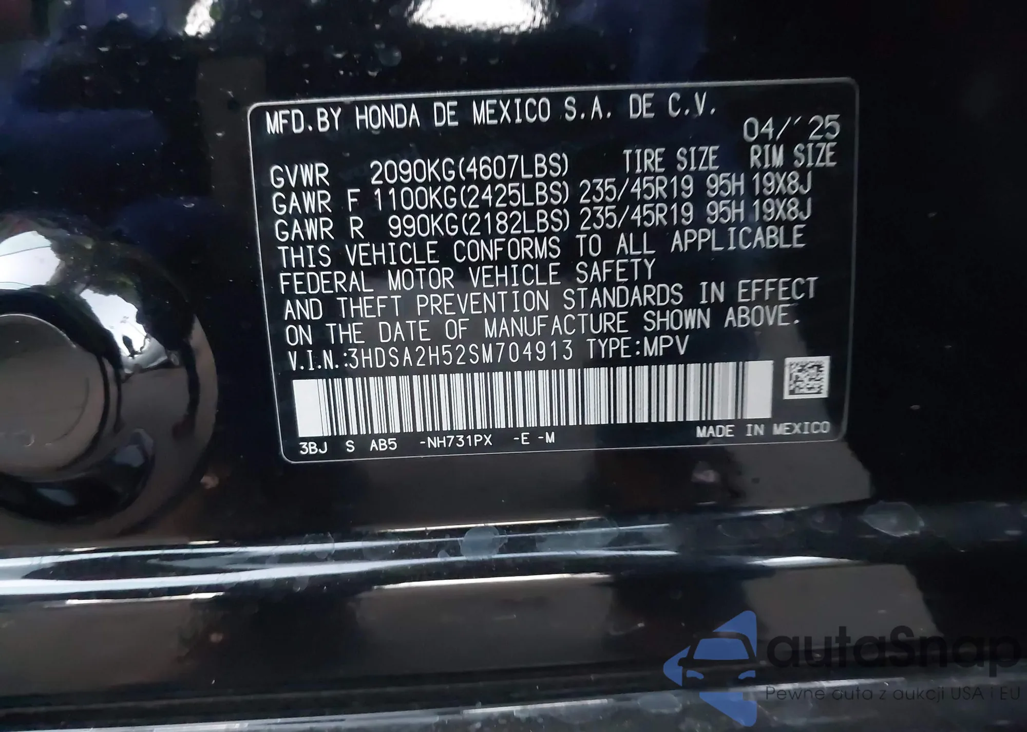 • VIN: 3HDSA2H52SM704913