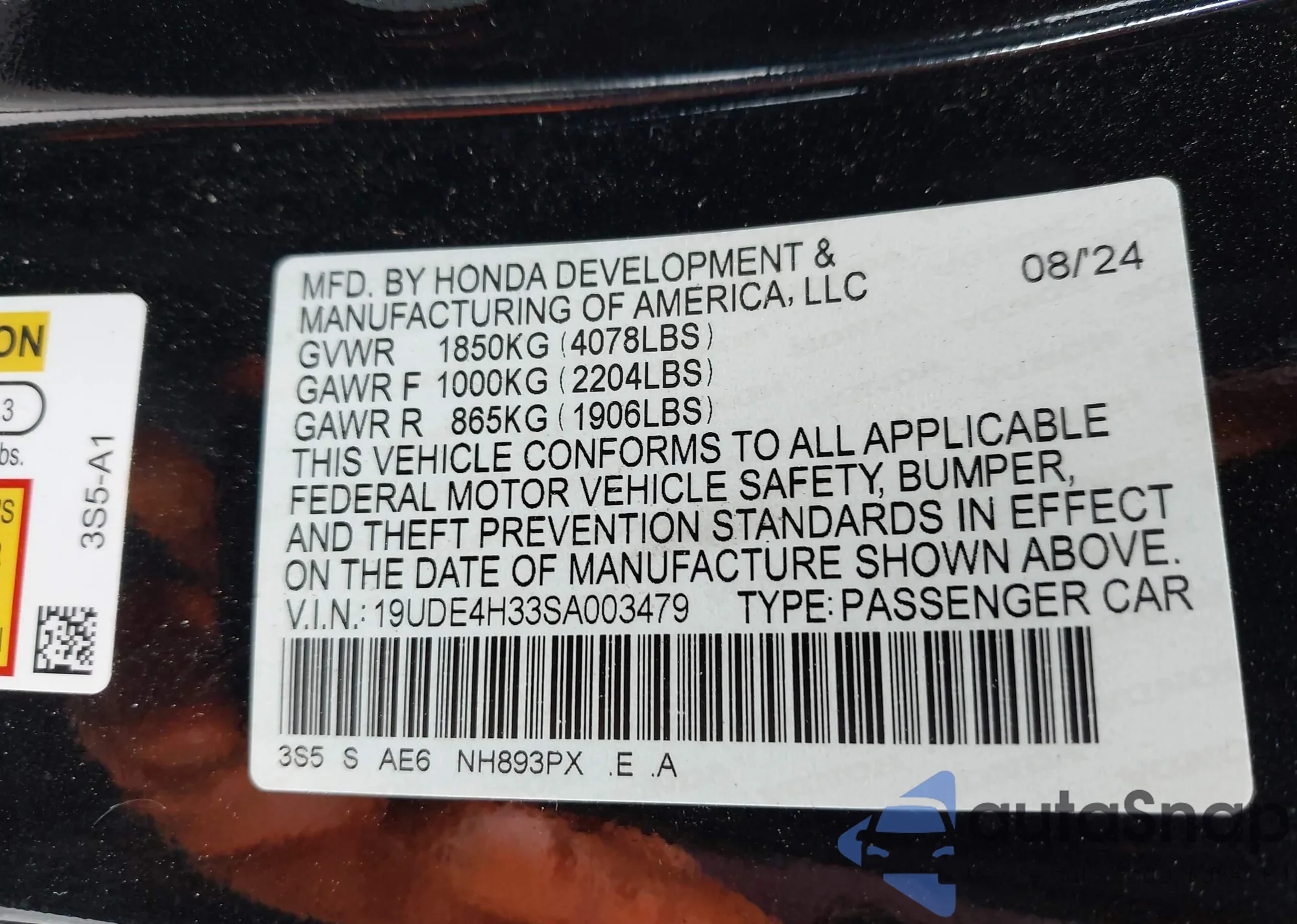 • VIN: 19UDE4H33SA003479