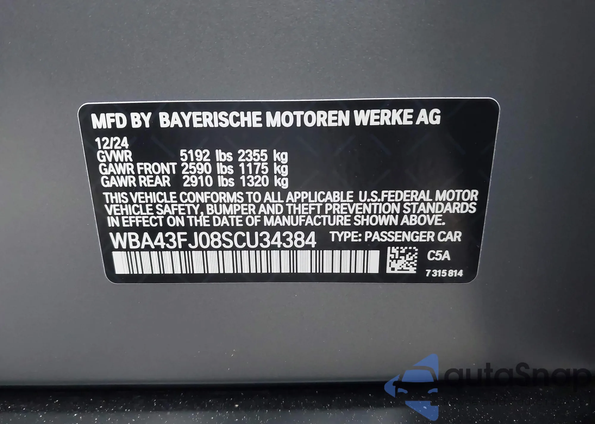 VIN: WBA43FJ08SCU34384