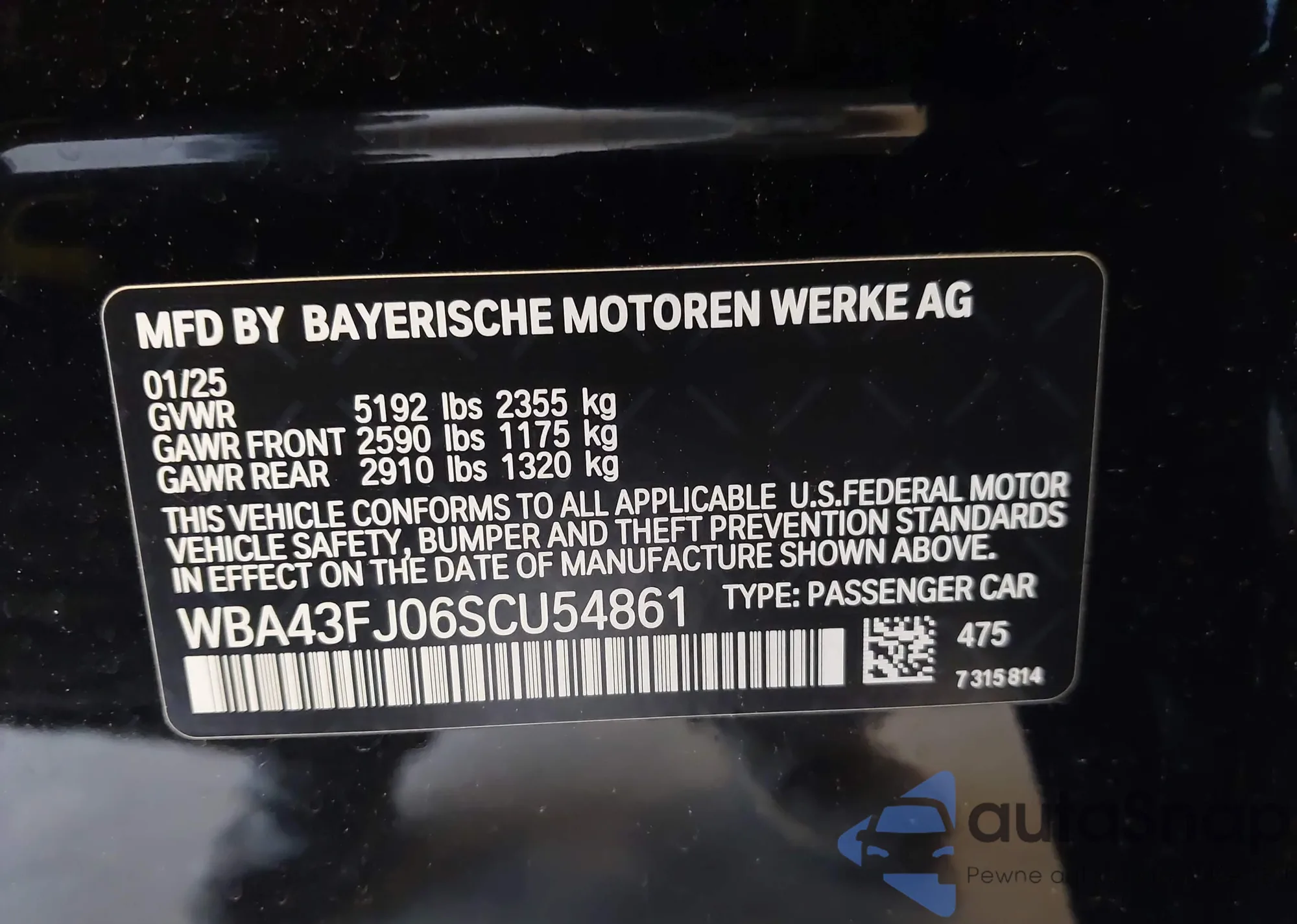VIN: WBA43FJ06SCU54861