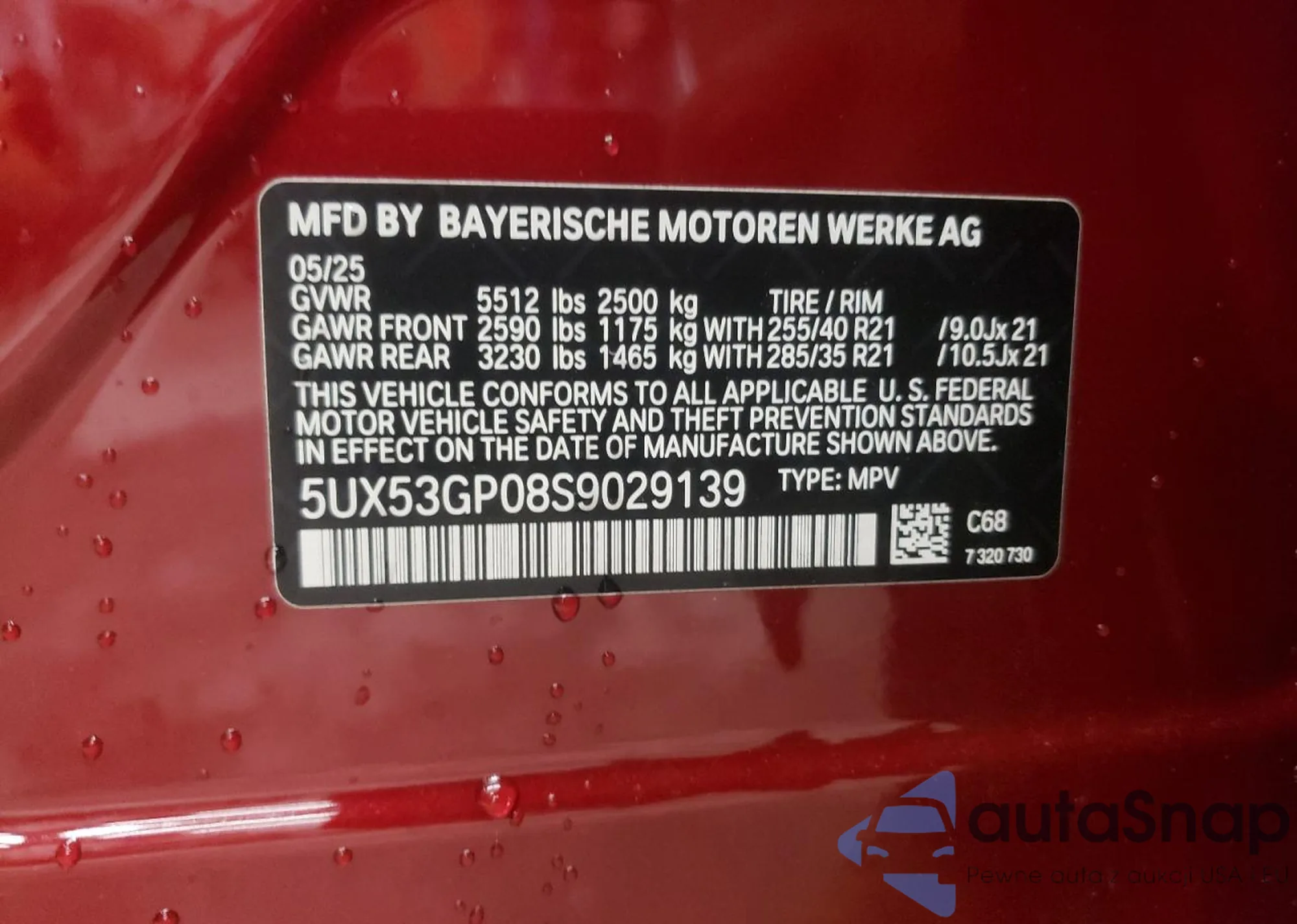 VIN: 5UX53GP08S9029139