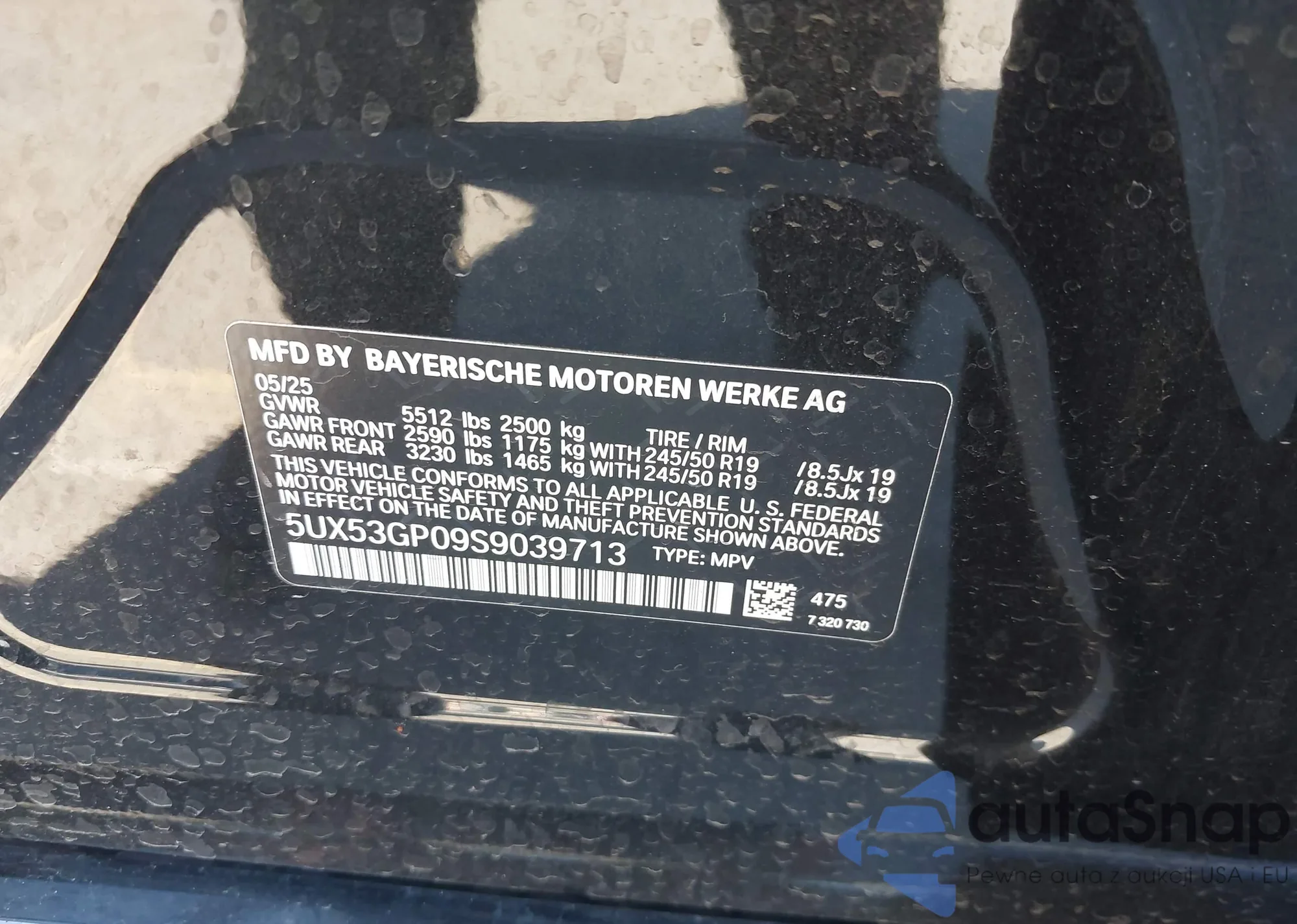 VIN: 5UX53GP09S9039713