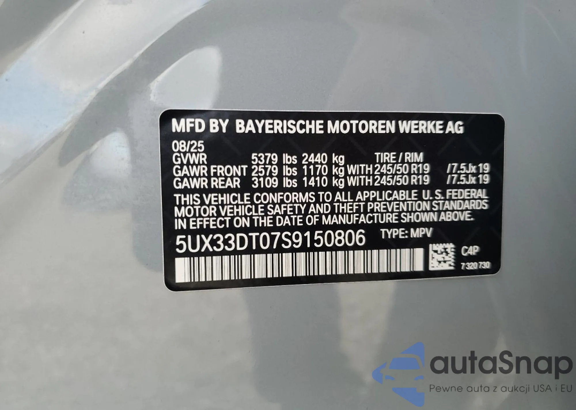 VIN: 5UX33DT07S9150806