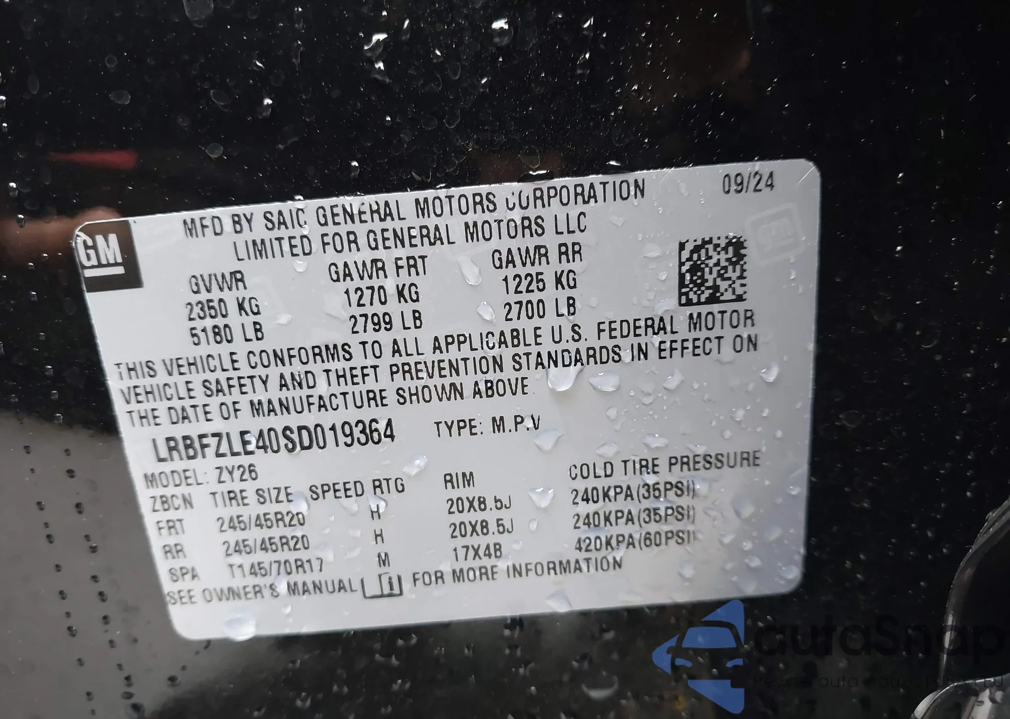 VIN: LRBFZLE40SD019364