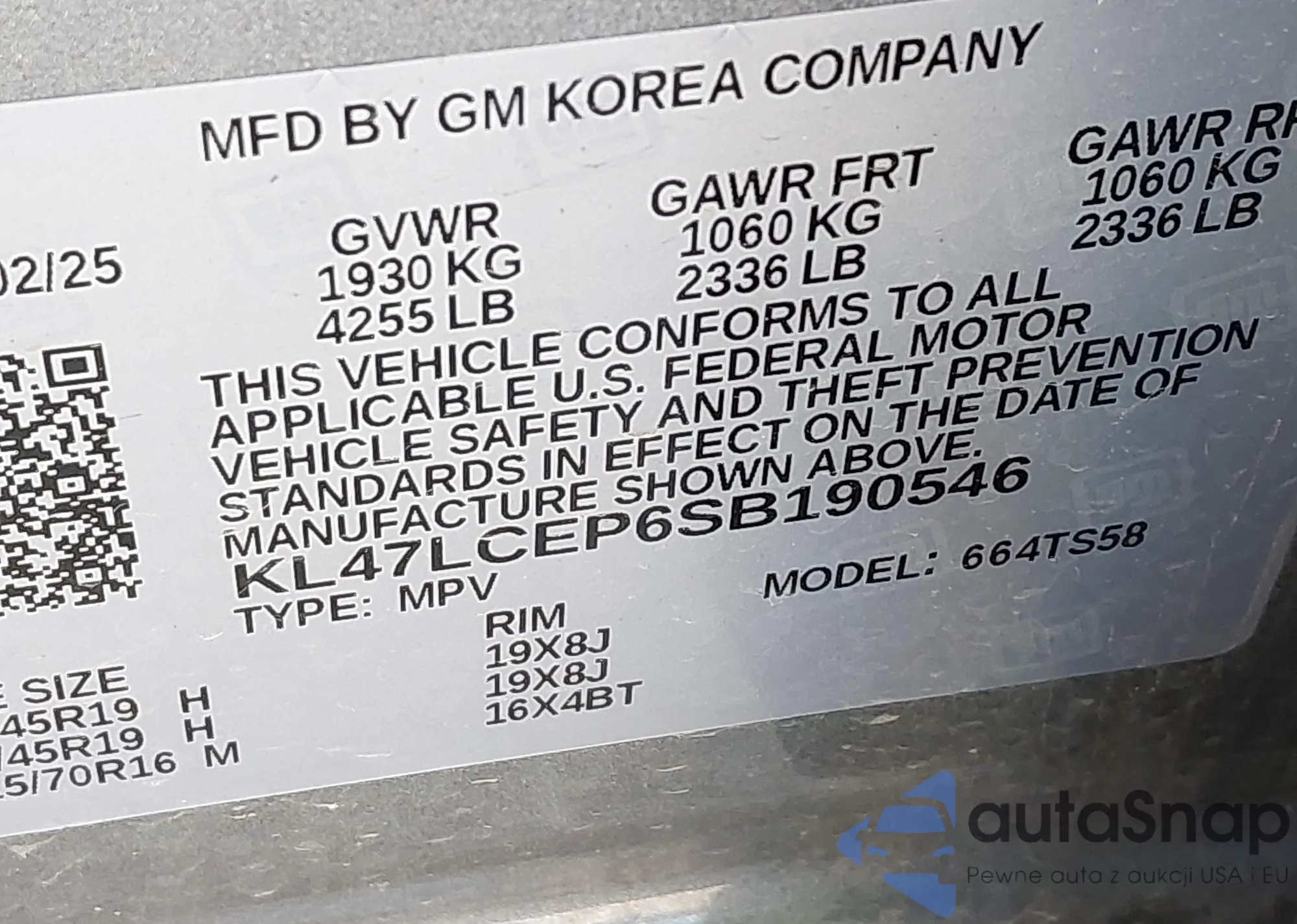 • VIN: KL47LCEP6SB190546