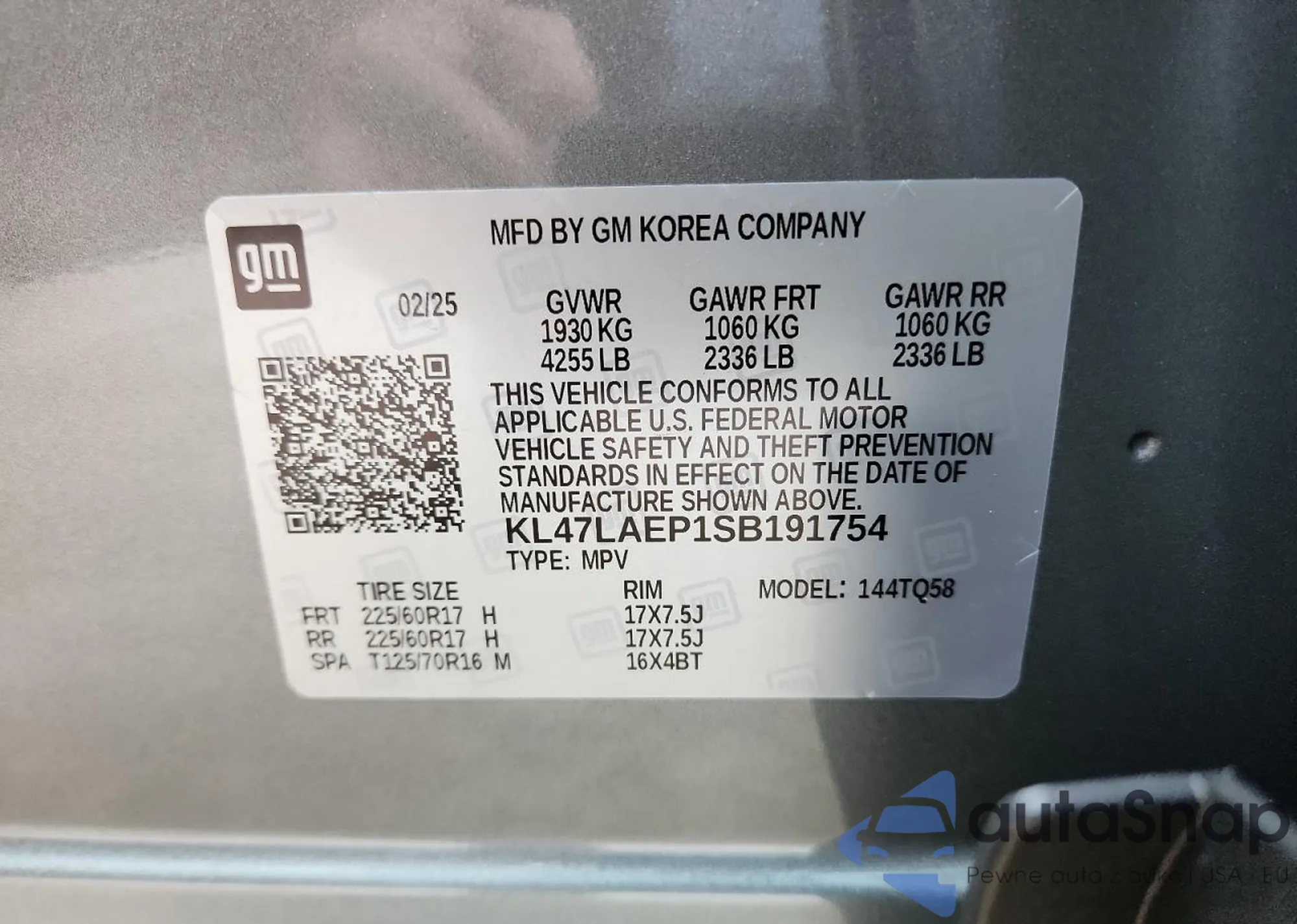VIN: KL47LAEP1SB191754