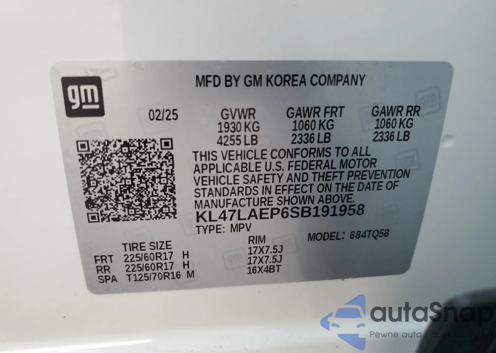 VIN: KL47LAEP6SB191958
