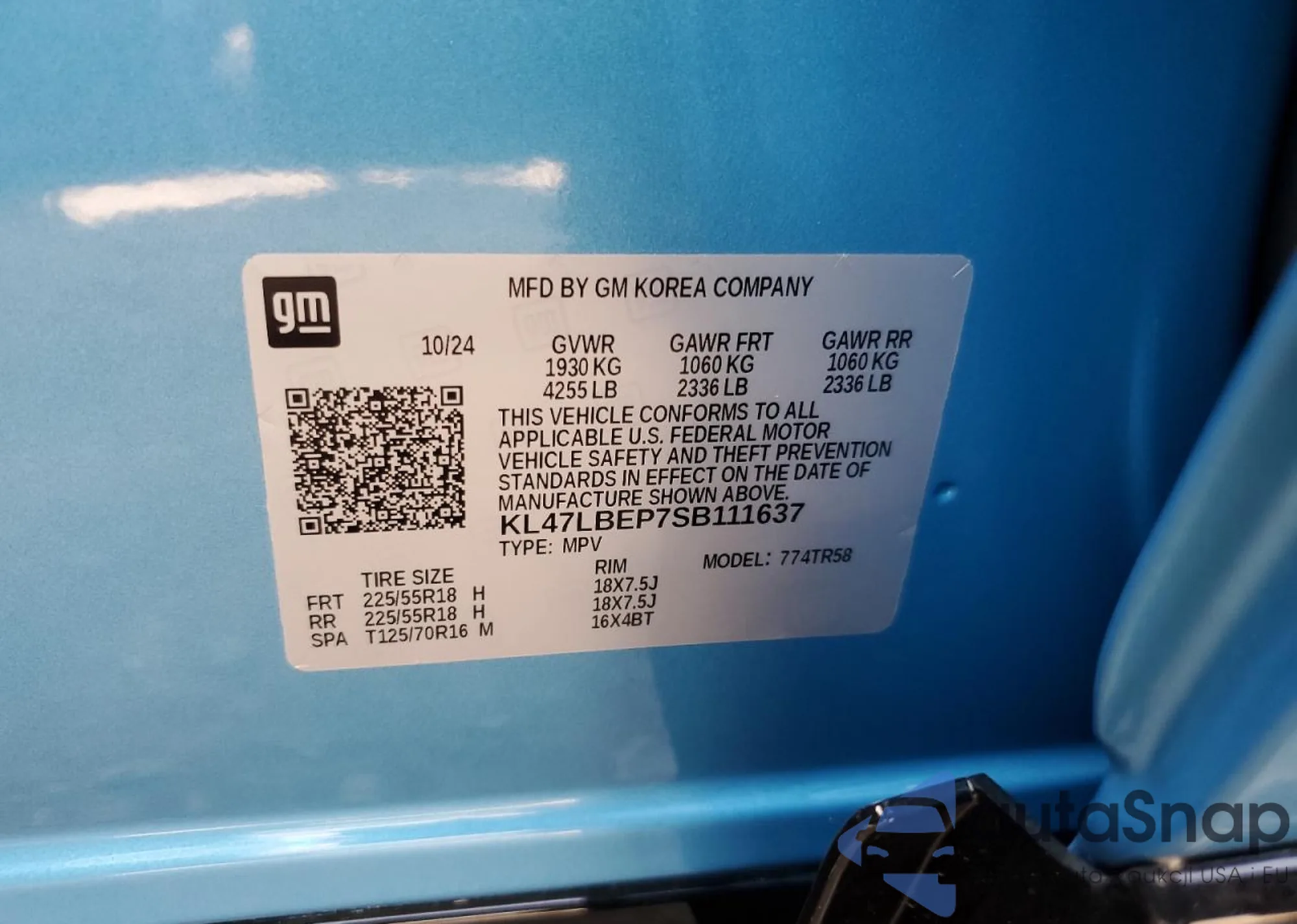 VIN: KL47LBEP7SB111637