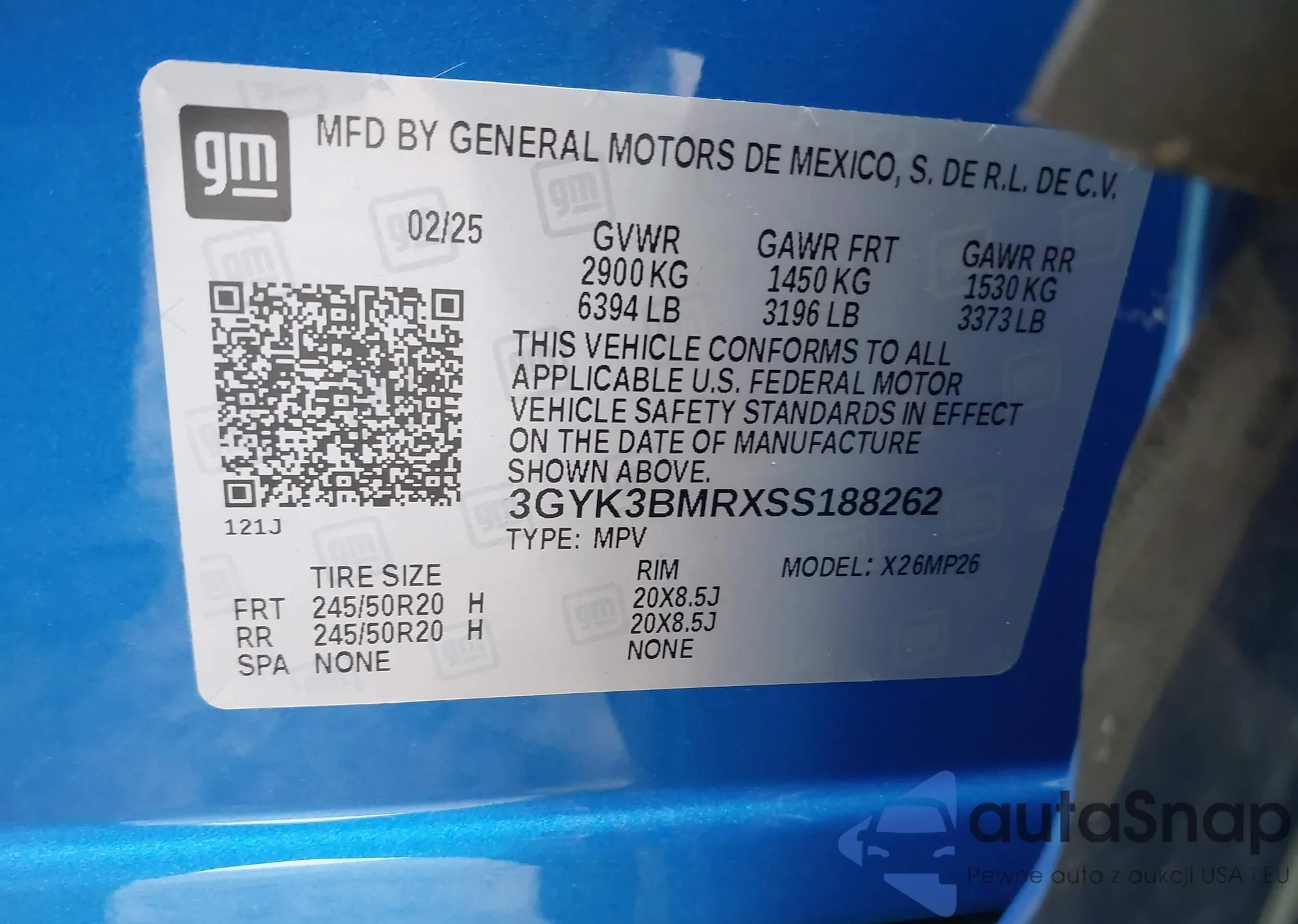 VIN: 3GYK3BMRXSS188262