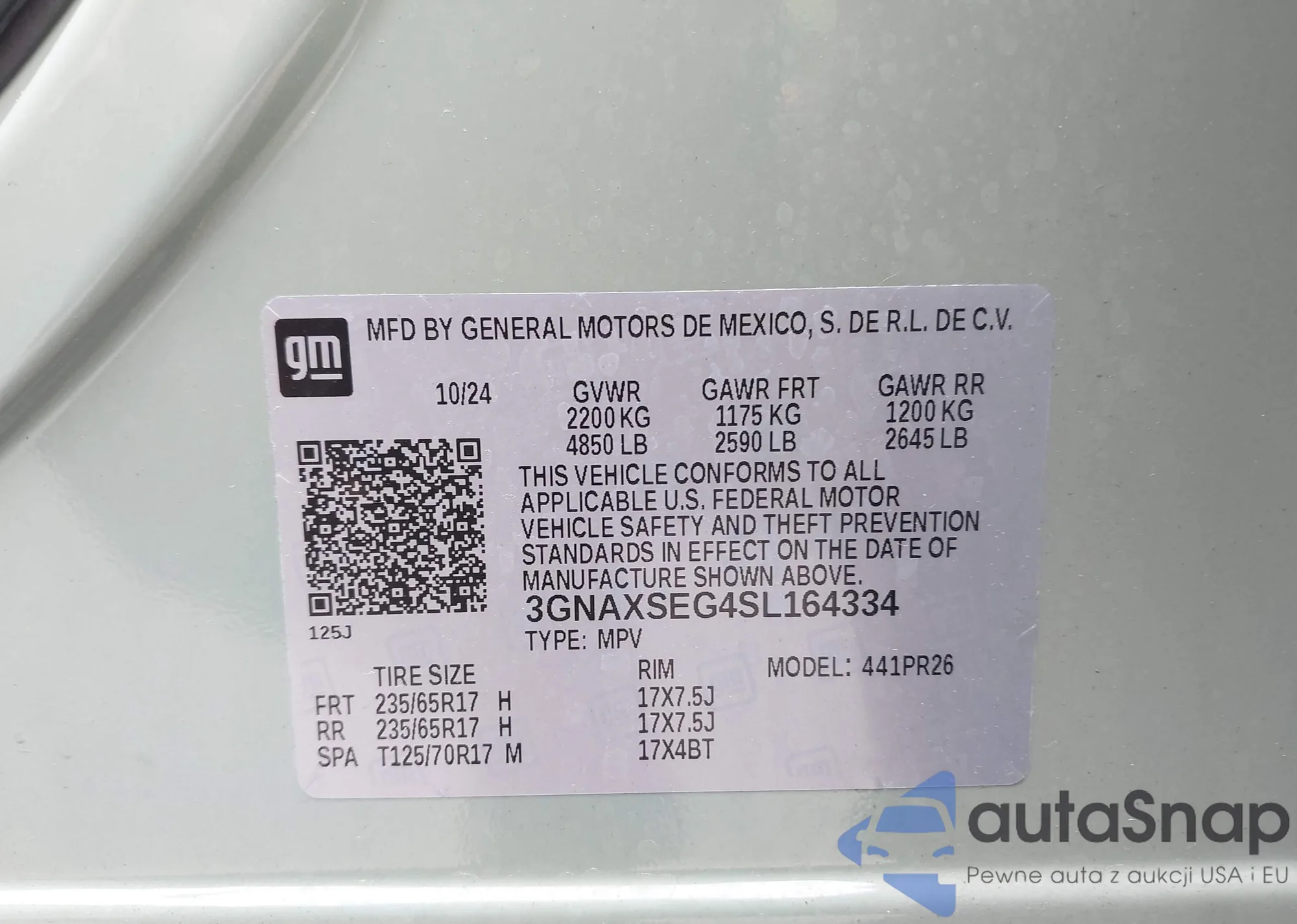 VIN: 3GNAXSEG4SL164334