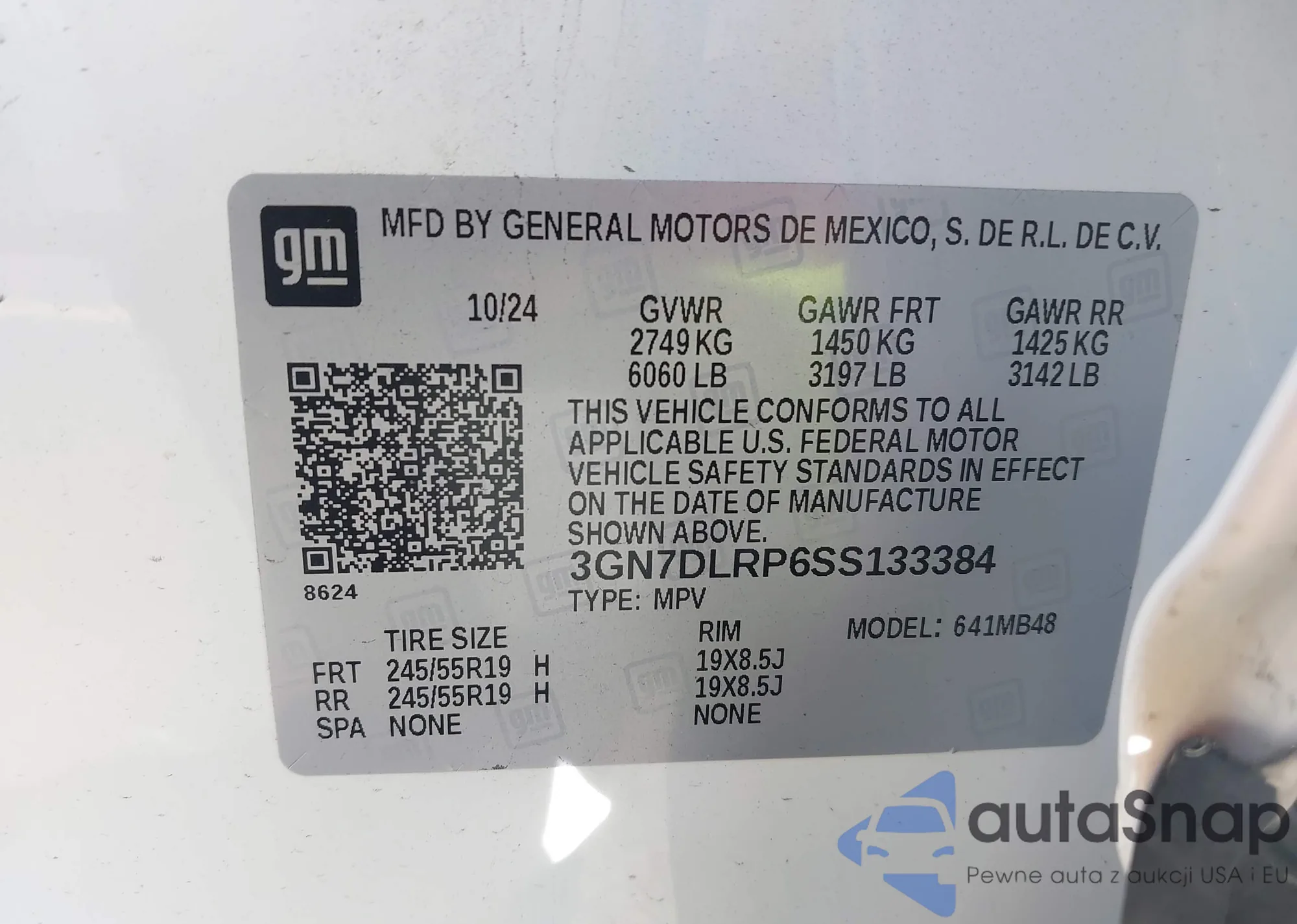 Автомобиль Chevrolet Equinox 2025 (VIN 3GN7DLRP6SS133384) ранее не участвовал в торгах. Документы чистые, пробег соответствует или ниже среднего по рынку. Продаётся страховой компанией — рекомендуем покупку. Доставка в порт займет около 6–8 недель.