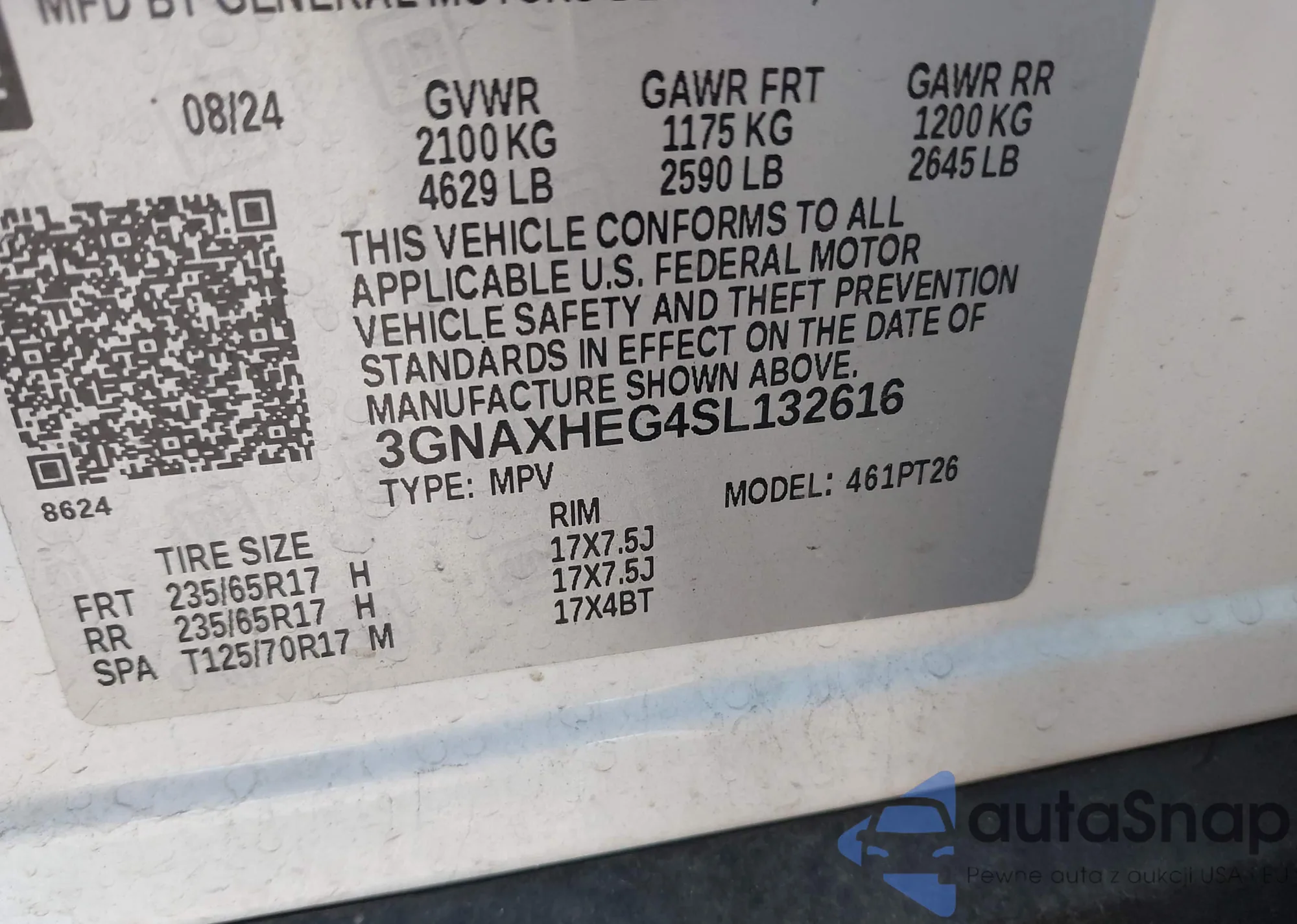 VIN: 3GNAXHEG4SL132616