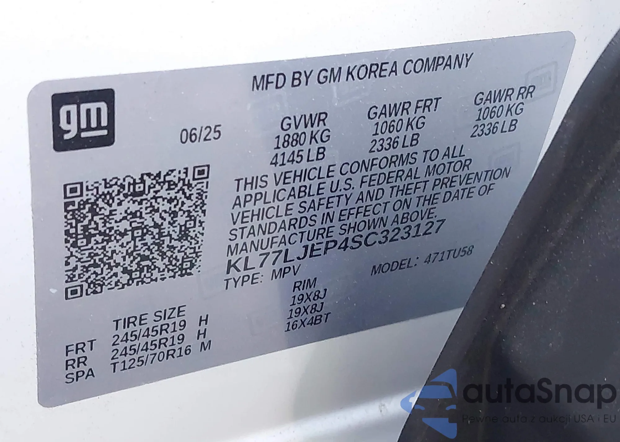 VIN: KL77LJEP4SC323127