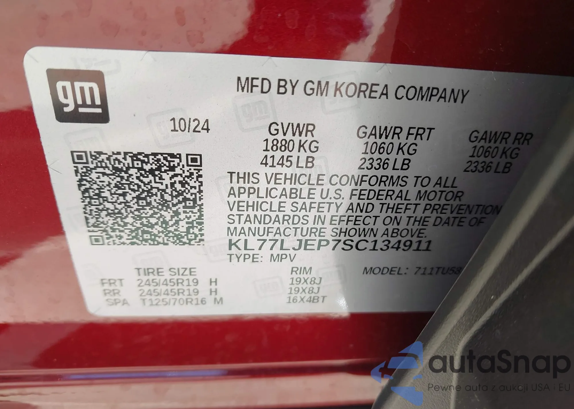 VIN: KL77LJEP7SC134911