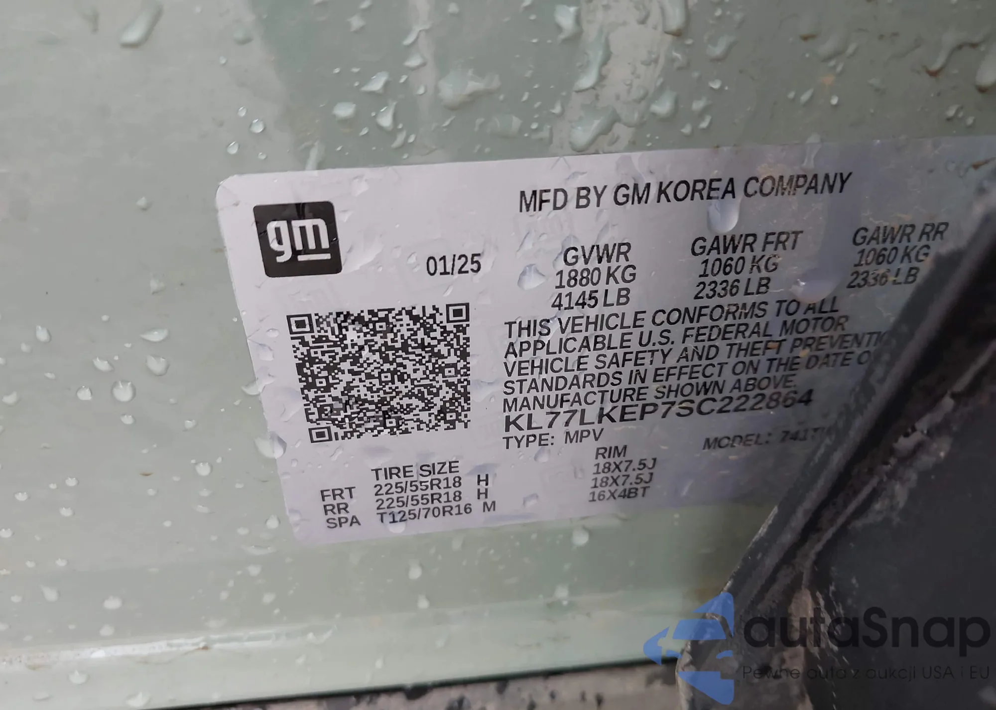 VIN: KL77LKEP7SC222864