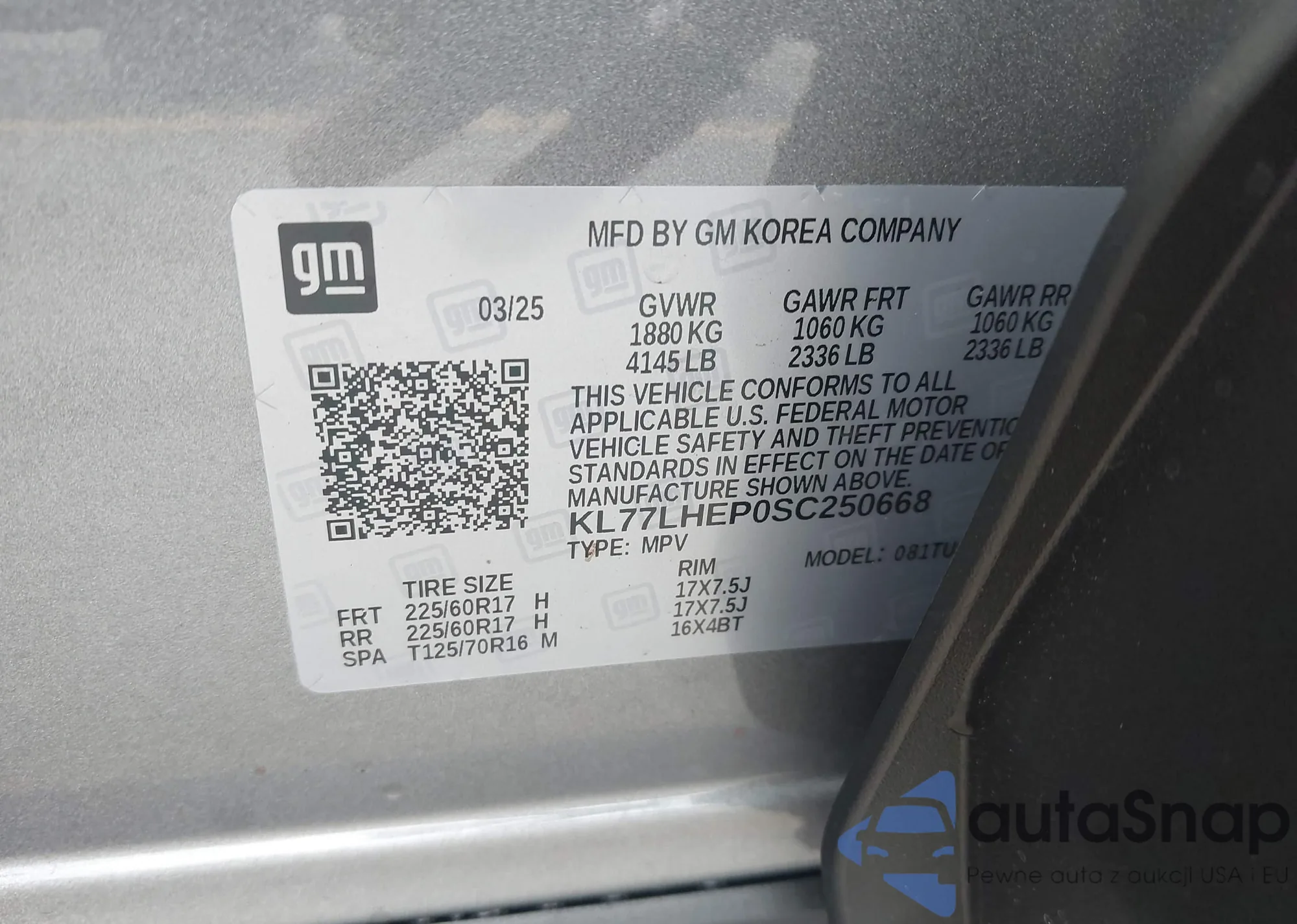 VIN: KL77LHEP0SC250668