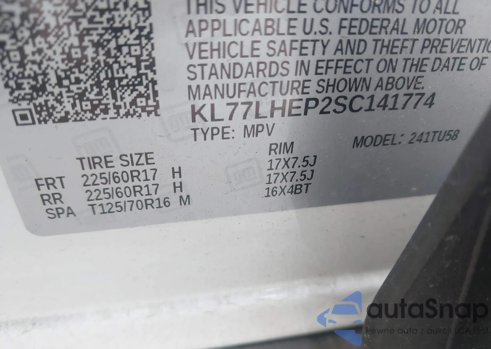 VIN: KL77LHEP2SC141774