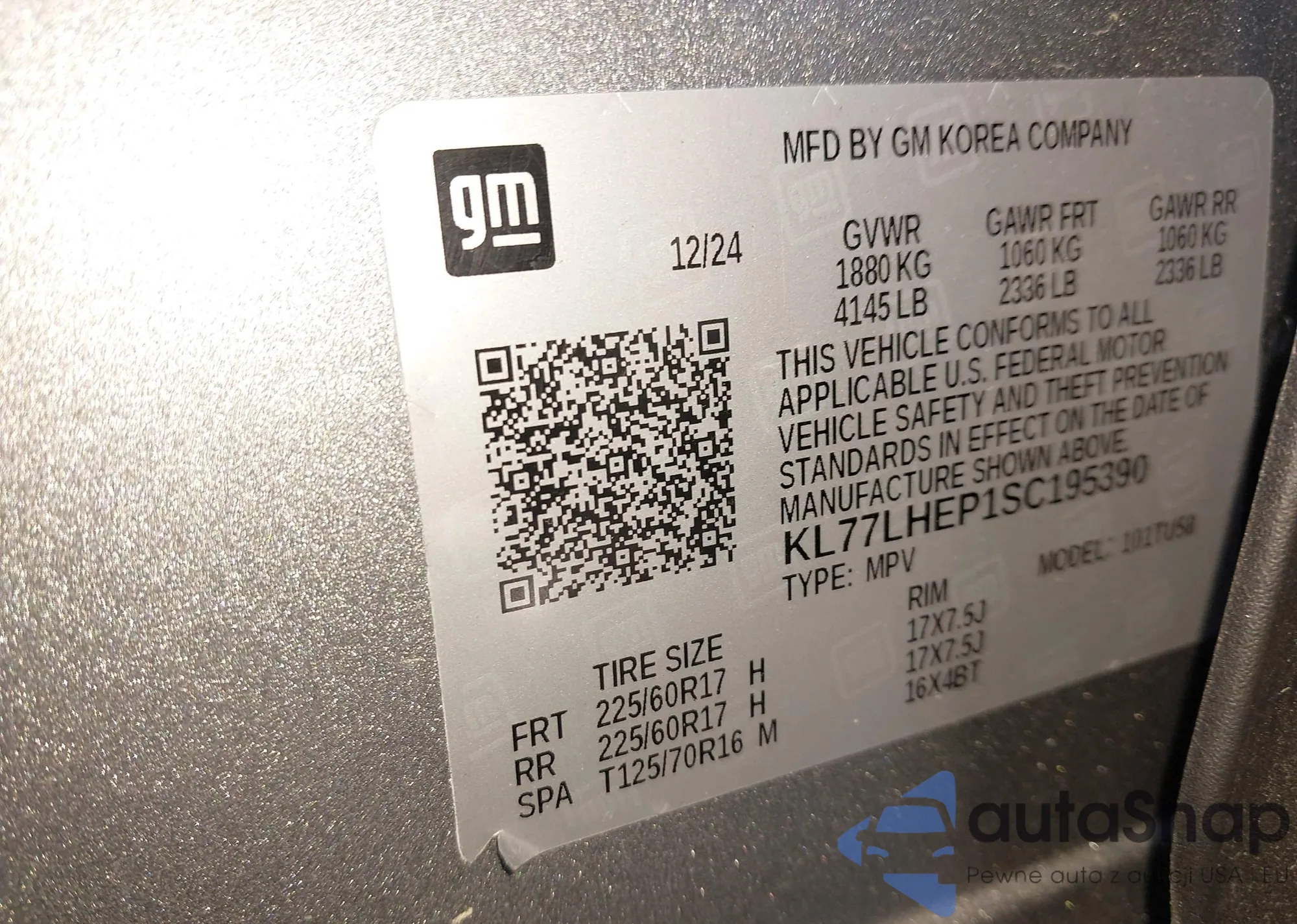 VIN: KL77LHEP1SC195390