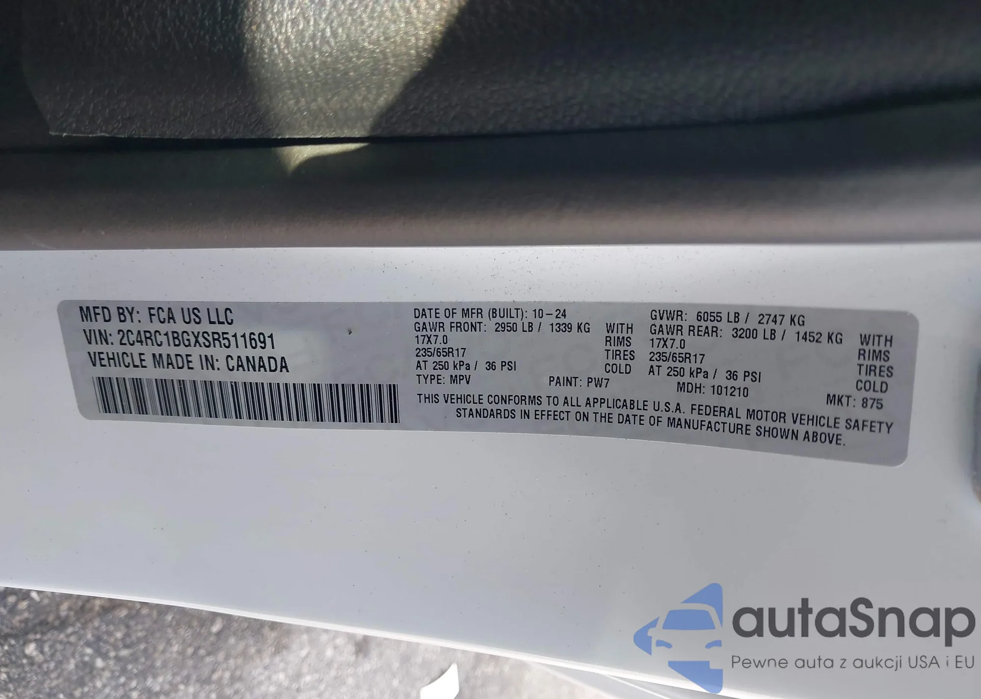VIN: 2C4RC1BGXSR511691