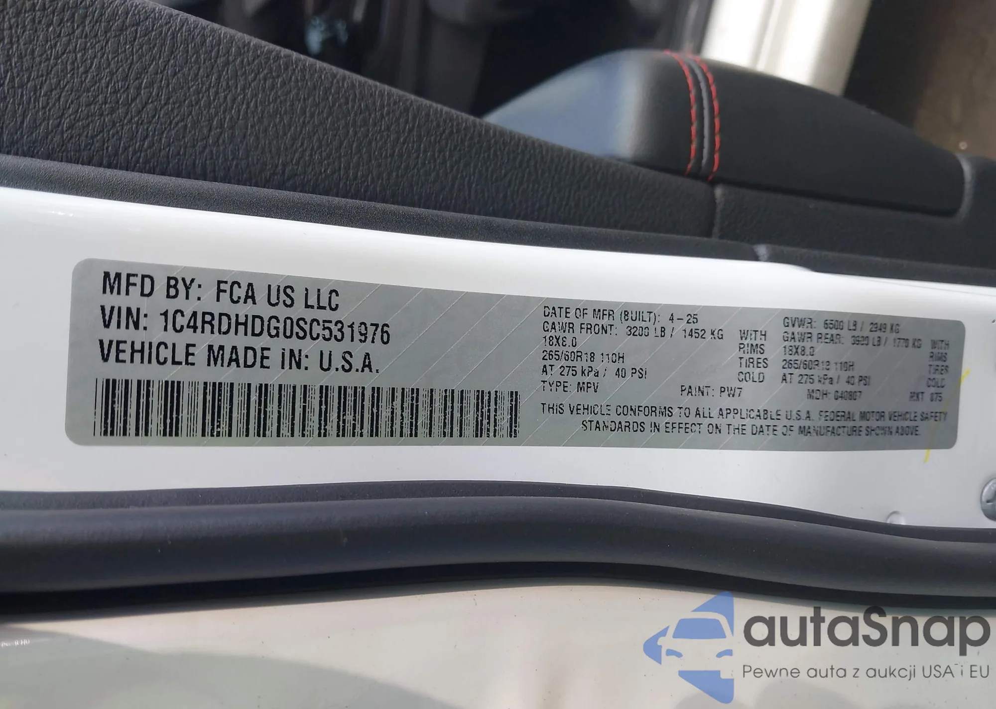 Автомобиль Dodge Durango 2025 (VIN 1C4RDHDG0SC531976) продаётся непроверенным продавцом. Рекомендуем проверить отчет Carfax и подтвердить возможность регистрации перед покупкой.
