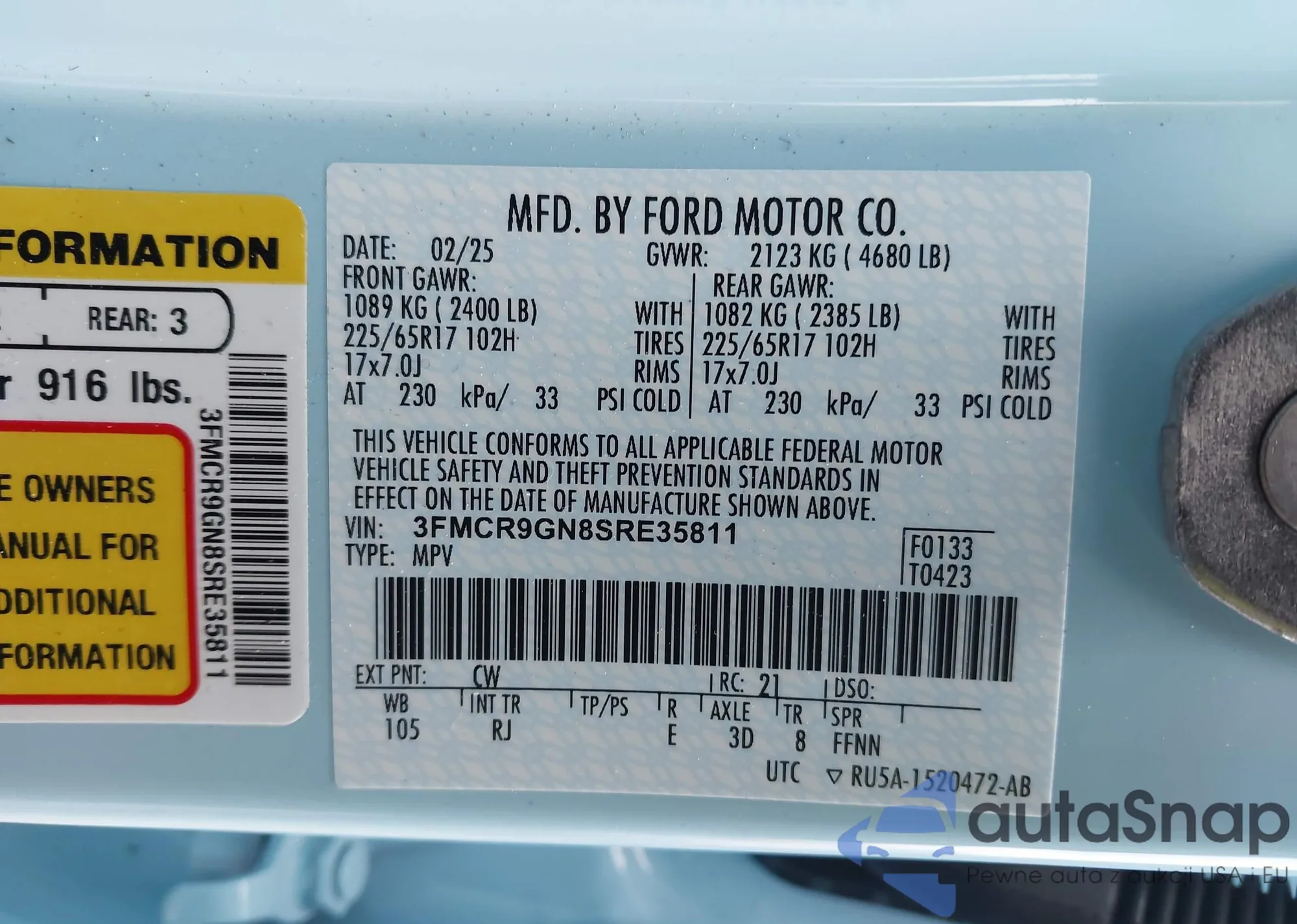 • VIN: 3FMCR9GN8SRE35811