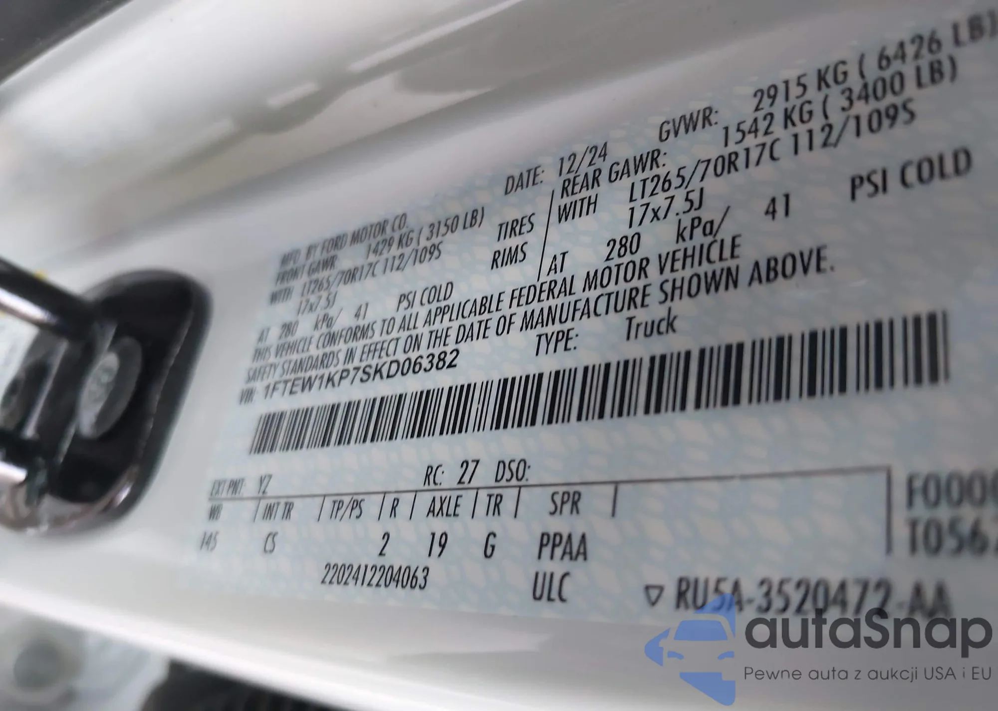 VIN: 1FTEW1KP7SKD06382