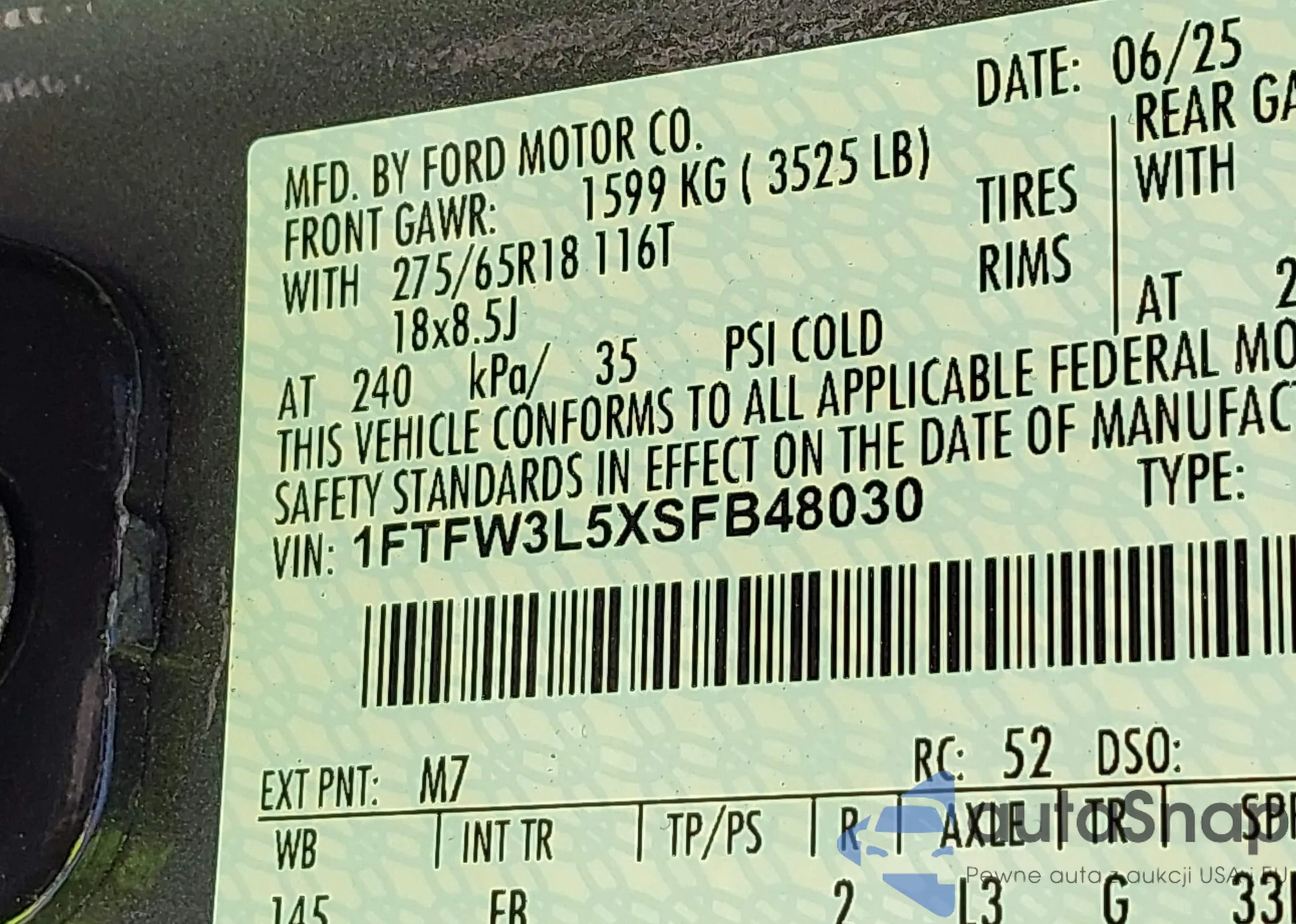 Автомобиль Ford F-150 2025 (VIN 1FTFW3L5XSFB48030) ранее не участвовал в торгах. Документы чистые, пробег соответствует или ниже среднего по рынку. Продаётся страховой компанией — рекомендуем покупку. Доставка в порт займет около 6–8 недель.