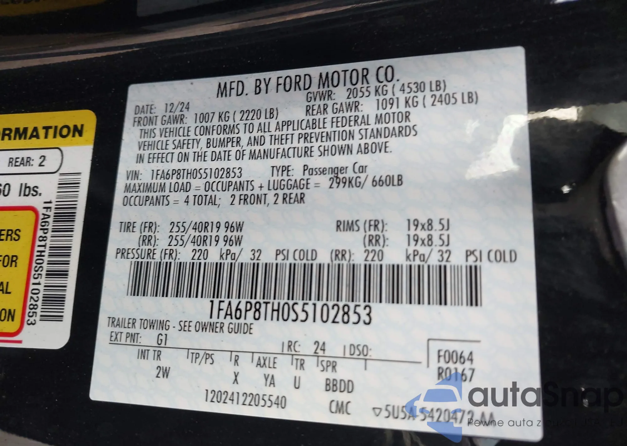 VIN: 1FA6P8TH0S5102853