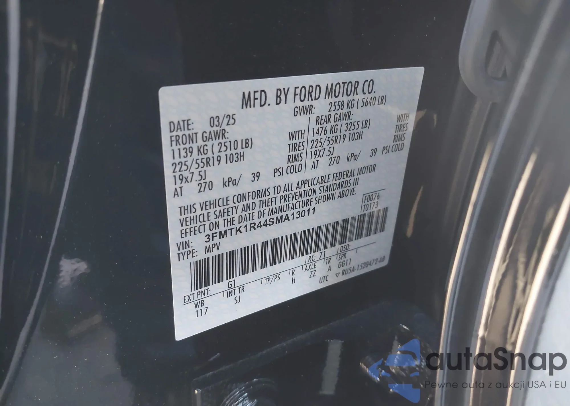 VIN: 3FMTK1R44SMA13011